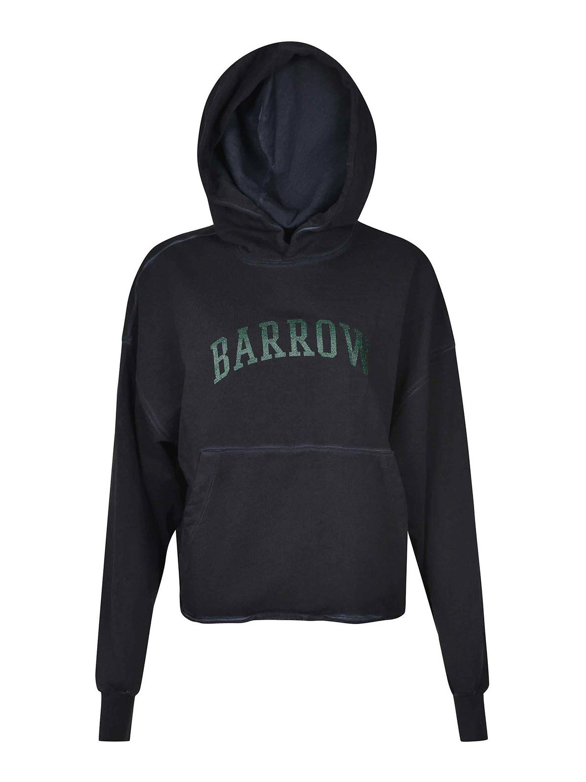 Barrow-Sweatshirt aus asphaltierter Baumwolle, Kapuze, lange Ärmel, gerippte Bündchen, kontrastierender Logo-Schriftzug auf der Brust mit Lurex-Effekt, Kängurutasche auf der Vorderseite, offen geschnittener Saum, 100% Baumwolle, hergestellt in Italien