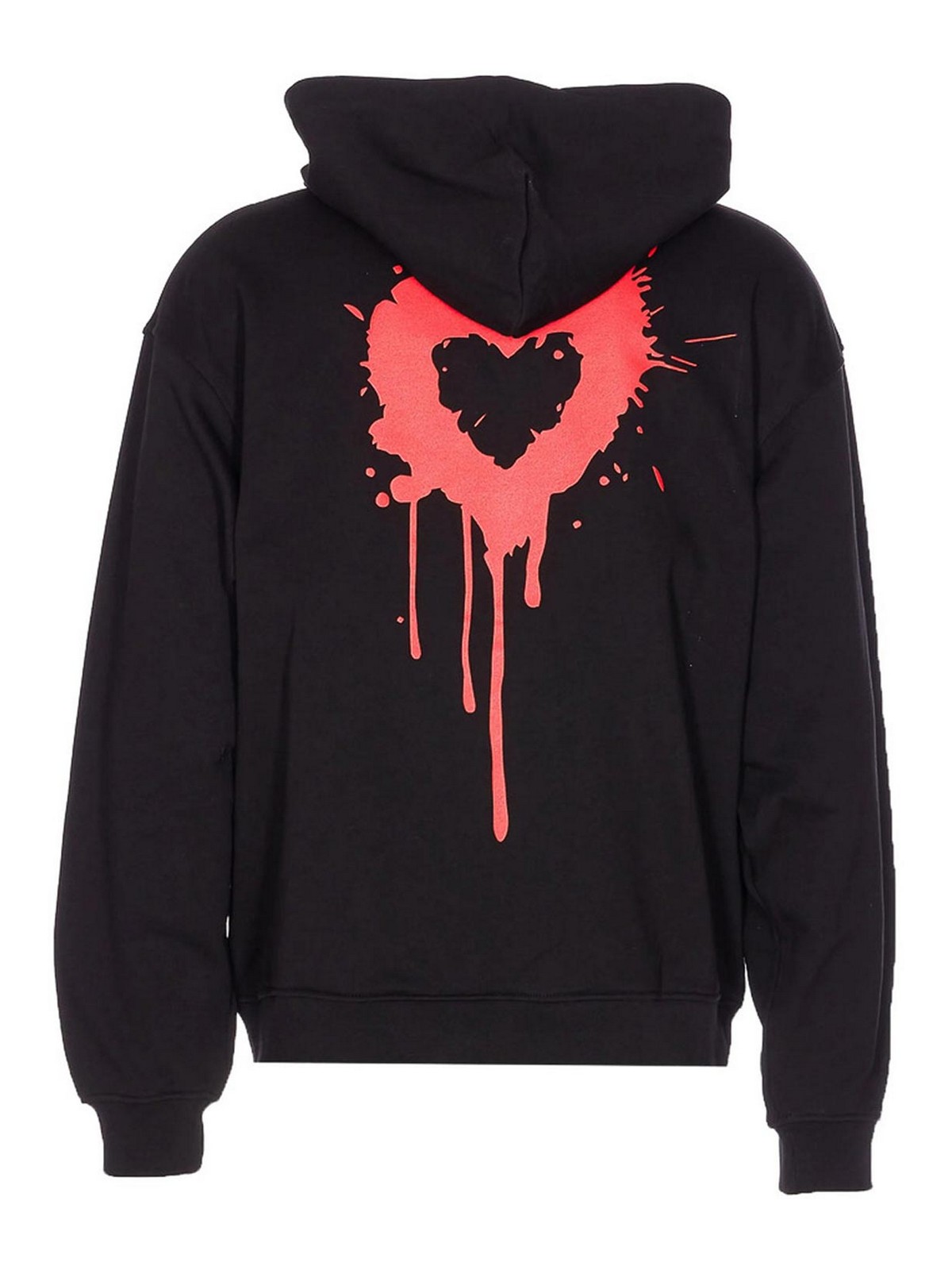 Schwarzer Logoprint, Kängurutasche, lange Ärmel, Rückseite, Herzprint
