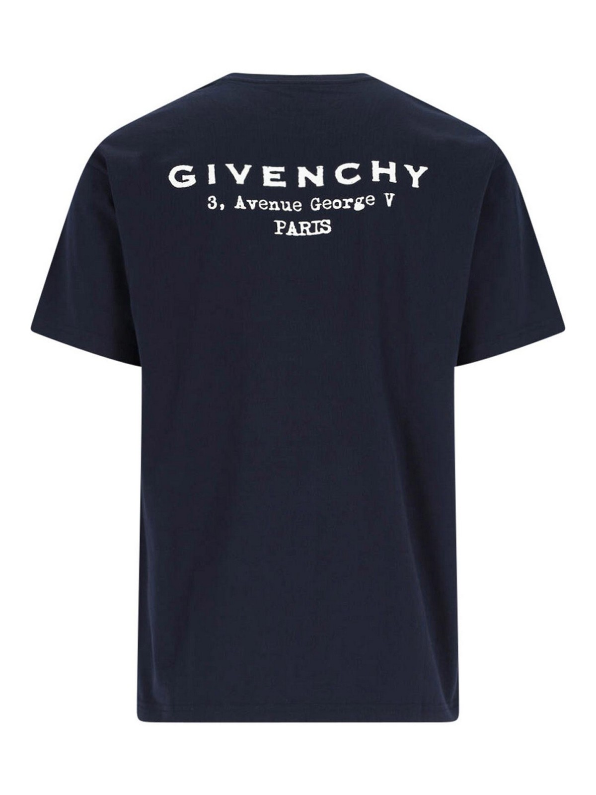 Givenchy-Logo-T-Shirt in Marineblau mit Rundhalsausschnitt, kurzen Ärmeln, Logodruck, Bianca, Retro-Orlo Dritto