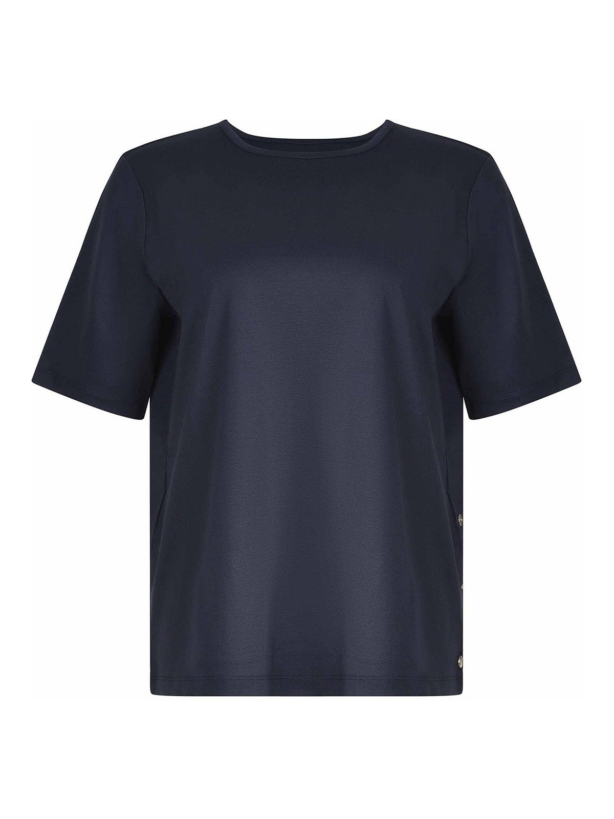 Herno T-Shirt aus nachtblauer Baumwolle, gerippter Rundhalsausschnitt, kurze Ärmel, Seitenschlitz mit Knöpfen und Logo-Lurexband, Logo-Plakette am Ärmelsaum und auf der Rückseite des Rundhalsausschnitts, 100% Baumwolle