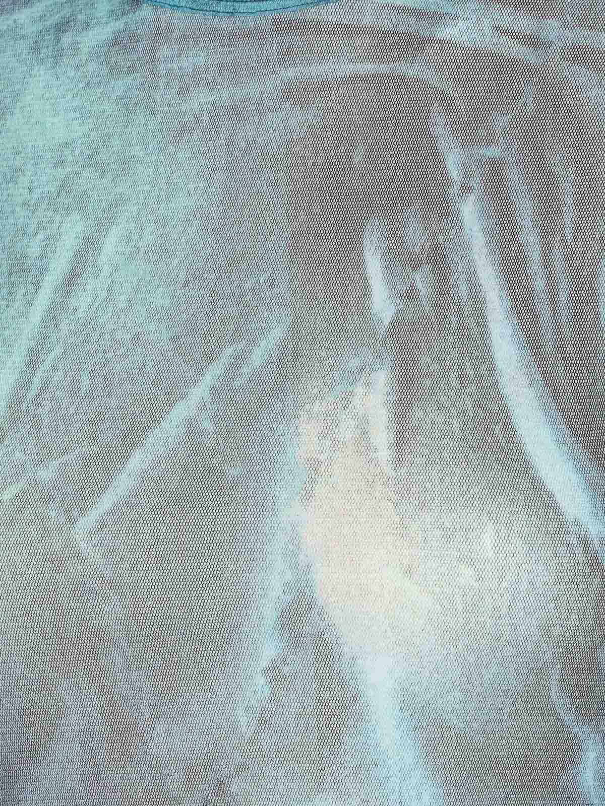Jean Paul Gaultier Baby-T-Shirt aus indigoblauem Netzstoff mit Rundhalsausschnitt und transparentem Wasserdruck