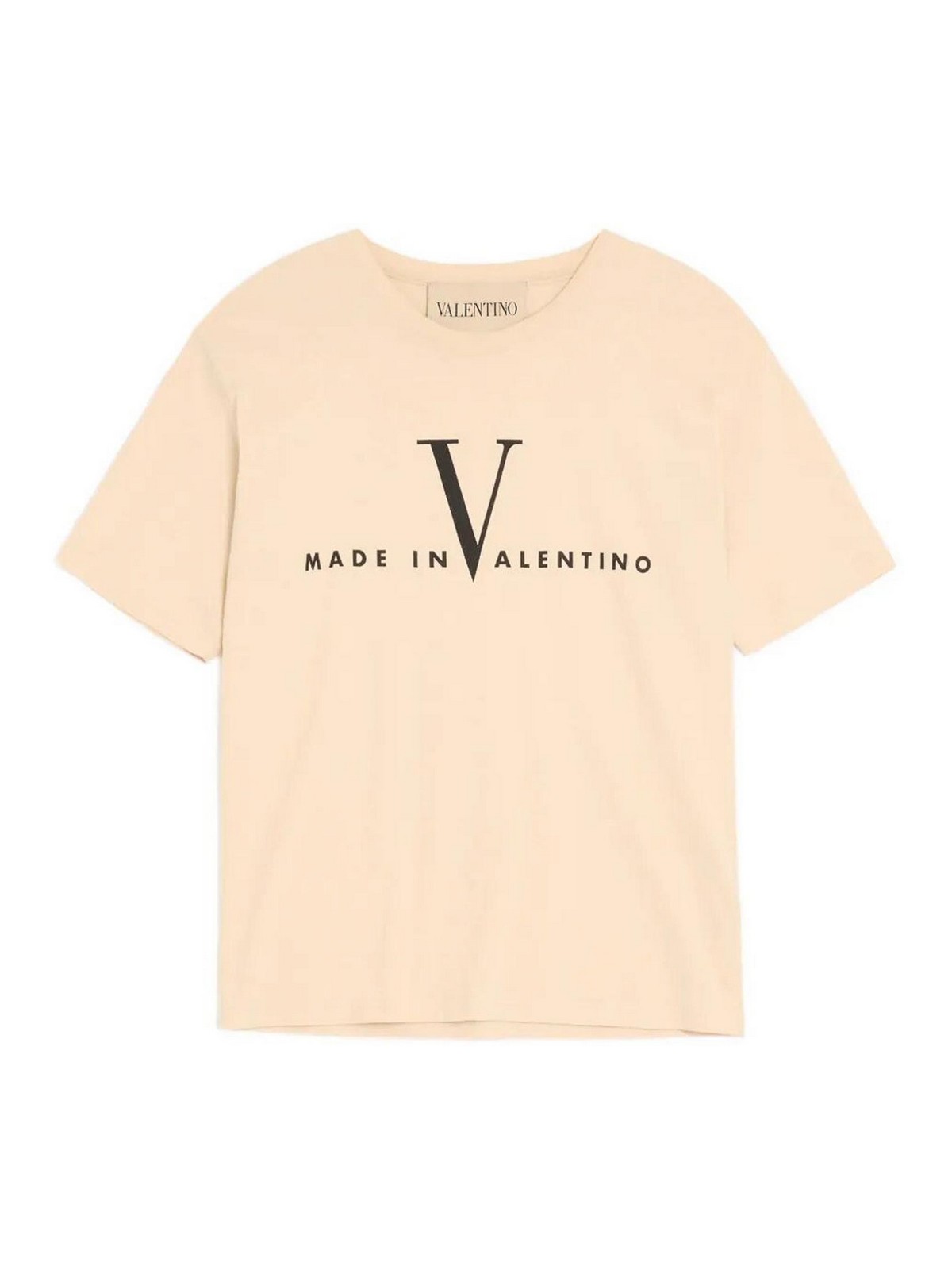 Herren-T-Shirt aus Baumwolle mit Made in Valentino-Print, entworfen, um Komfort und modernen Stil zu kombinieren. Der Farbkontrast von Burro Nero verleiht dem Modell einen starken Charakter und passt perfekt in die tägliche Garderobe.