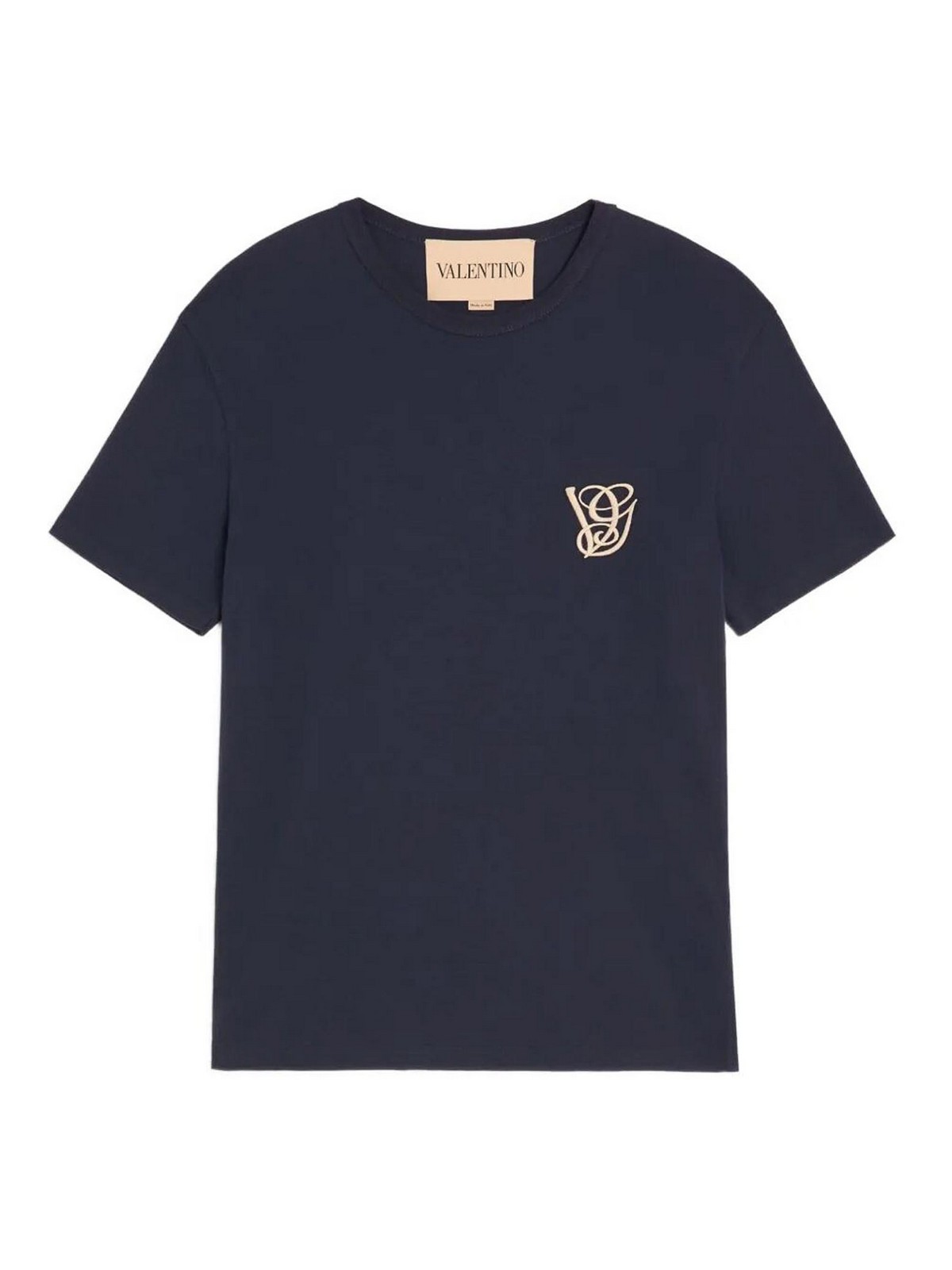 Herren-T-Shirt aus Baumwolljersey, gekennzeichnet durch eine VG-Stickerei auf der Brust, die ein ikonisches und diskretes Detail darstellt. Die marineblaue Farbe unterstreicht das essentielle Design und macht das Kleidungsstück ideal für einen raffinierten, lässigen Look.
