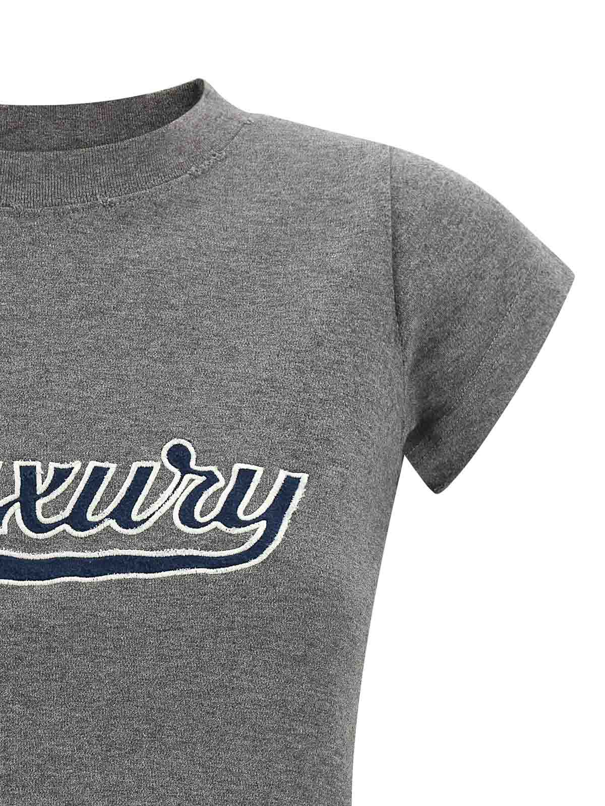Langärmliges T-Shirt aus elastischem Interlock-Design mit Shrunk Luxury Script im Crop-Stil mit Rundhalsausschnitt