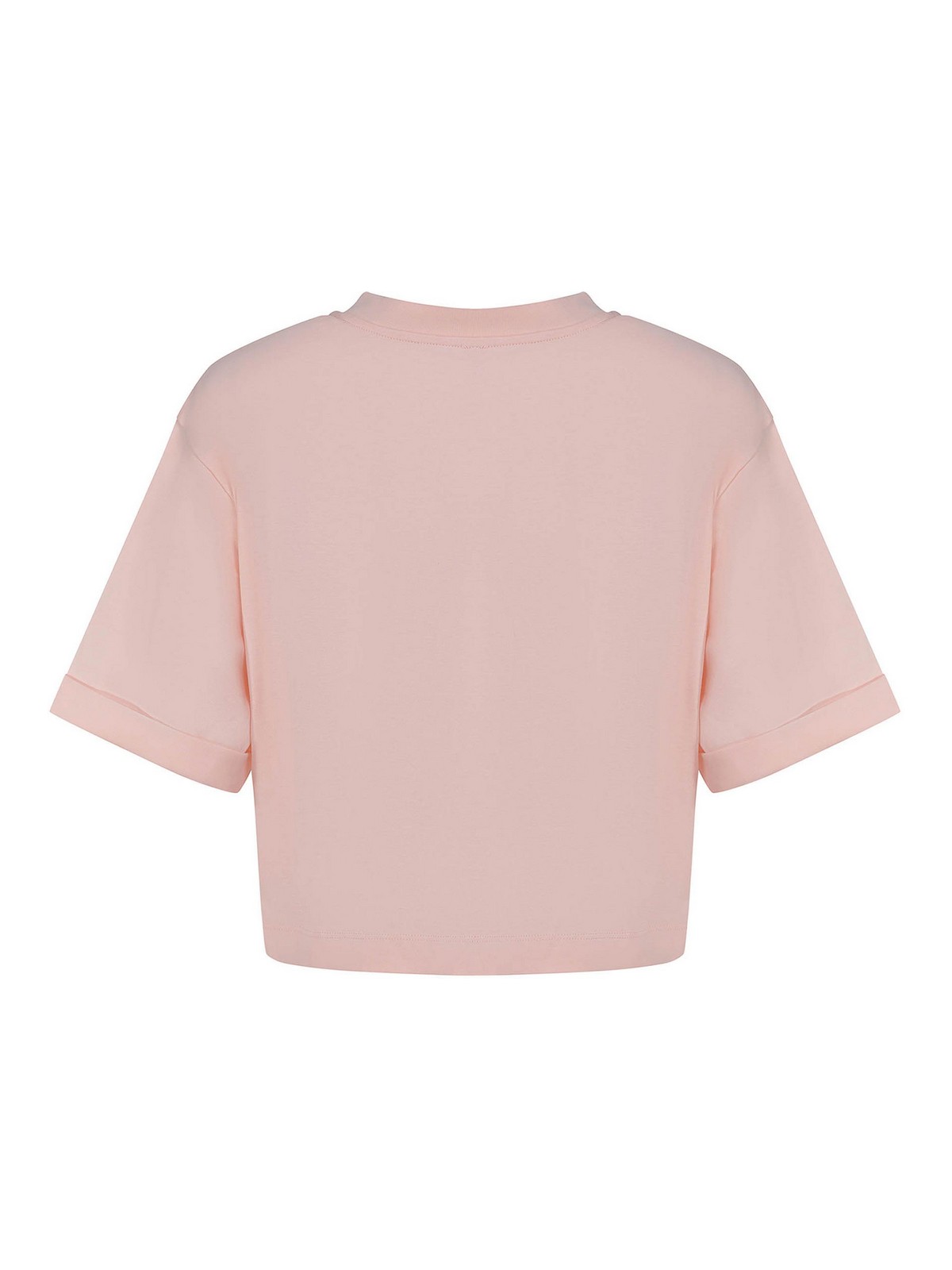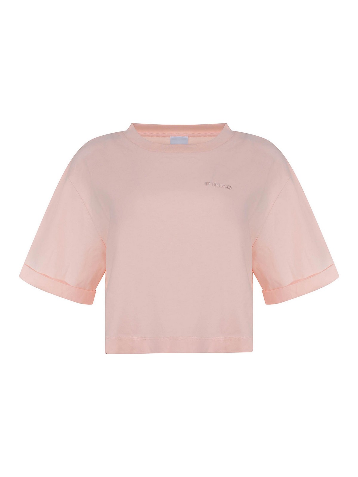 Pinko Douala T-Shirt, gerippter Rundhalsausschnitt, kurze Ärmel mit Drehung, Up-Ton, On, Ton, gesticktem Pinko-Logo-Schriftzug auf der Brust, verkürzte Passform