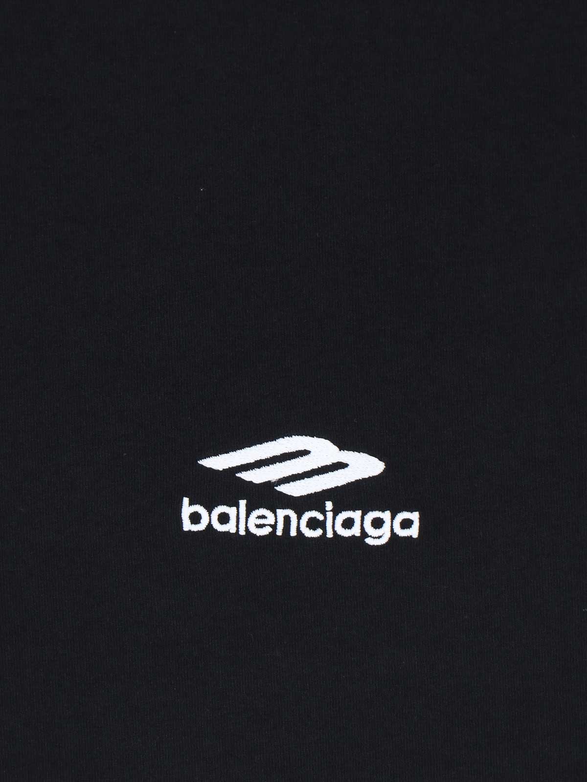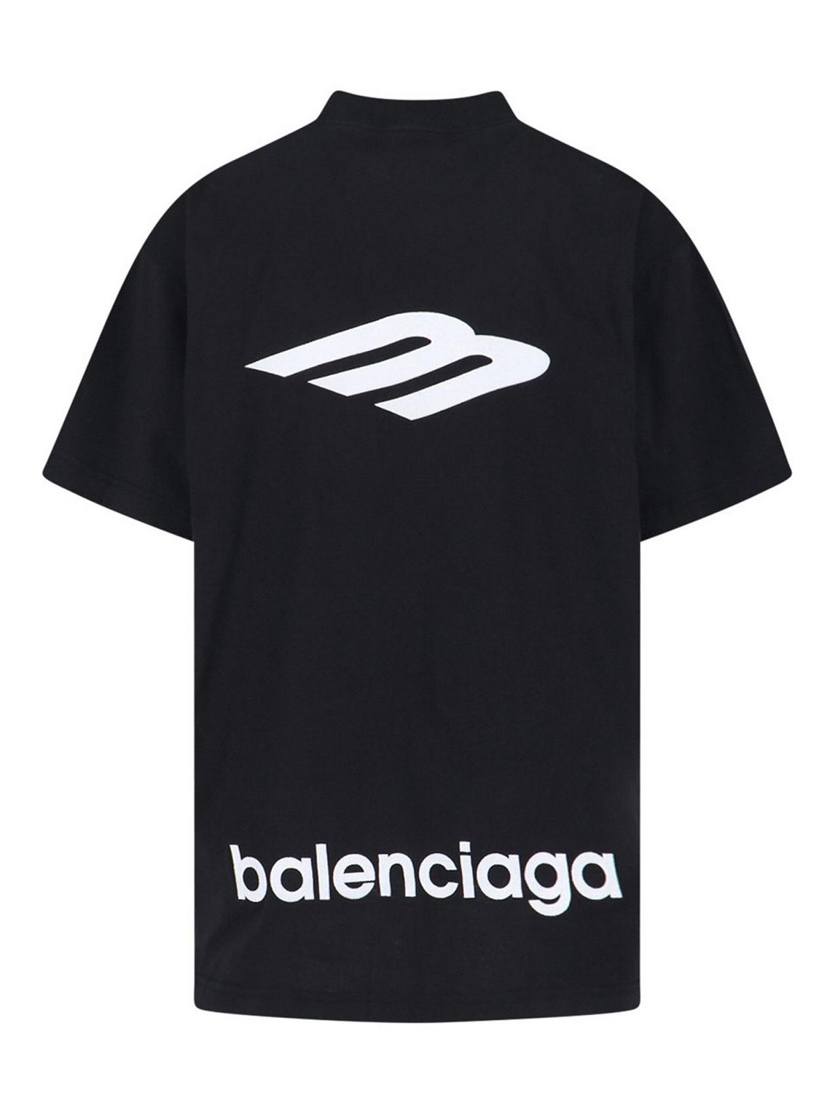 Balenciaga 3b Sports Icon T-Shirt aus schwarzer Baumwolle, Rundhalsausschnitt, kurze Ärmel, Logodruck auf beiden Seiten, gerader Saum.