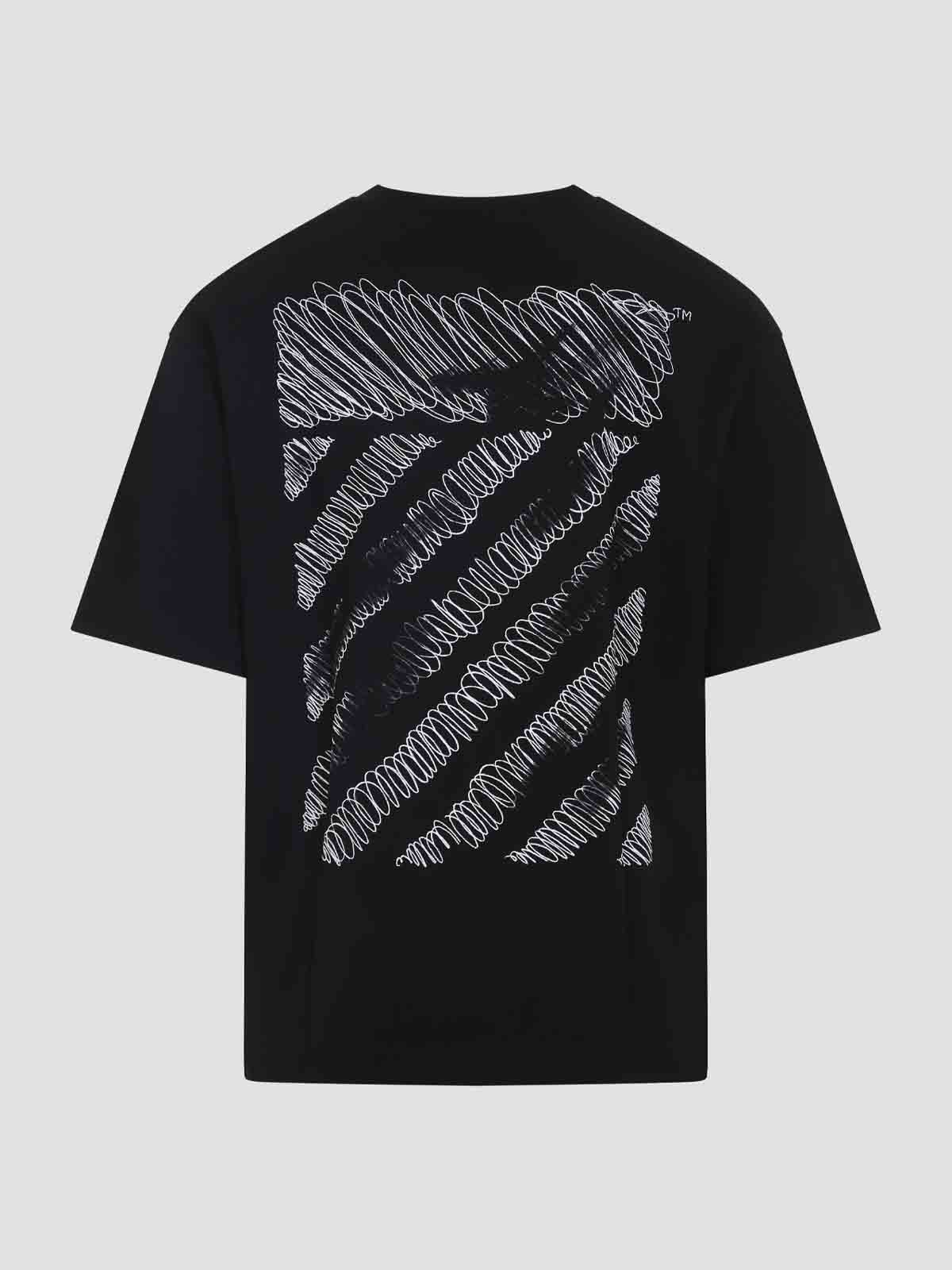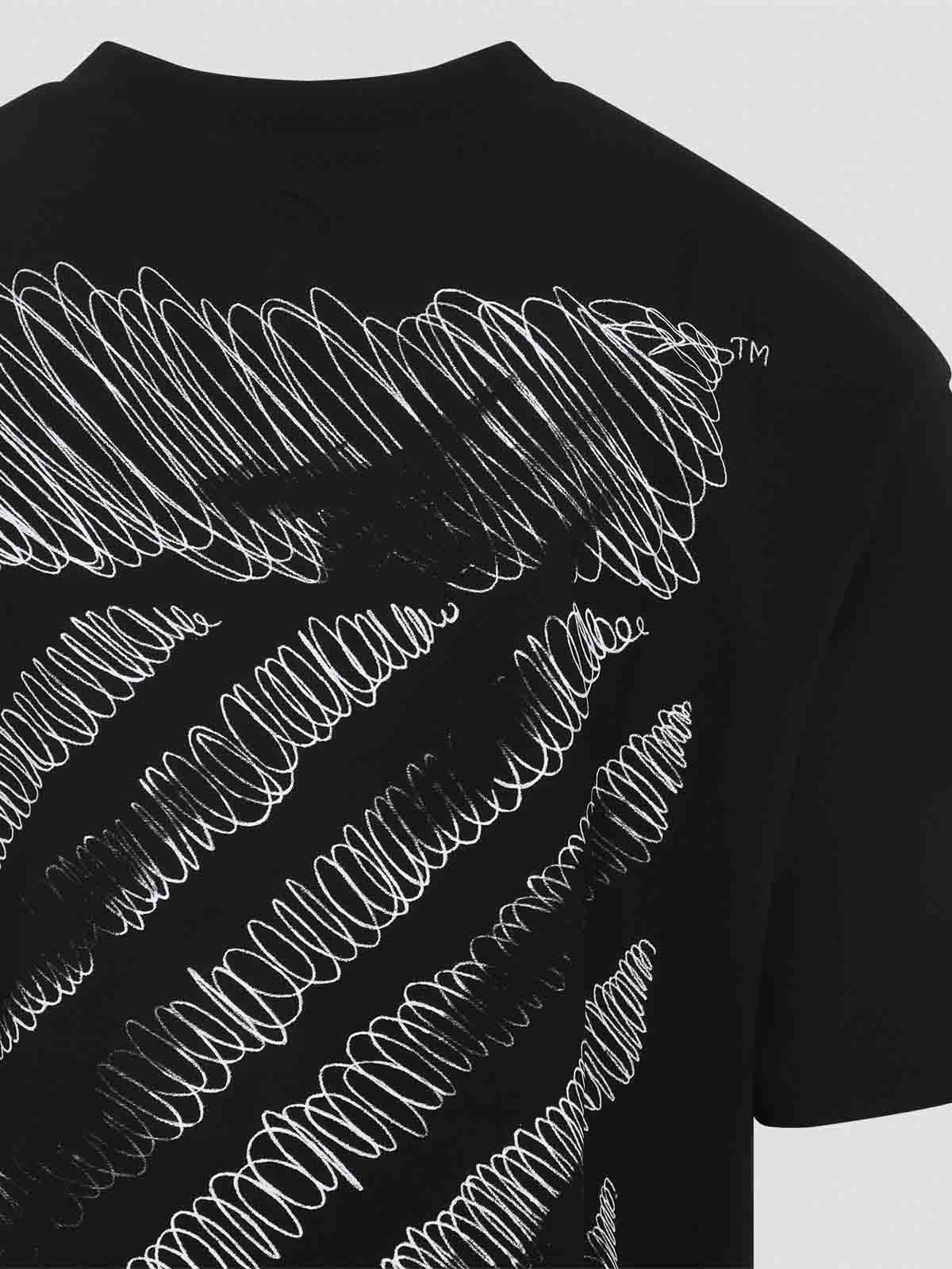 Cremefarbenes schwarzes Scribble Diag Skate T-Shirt, gefertigt aus schwarzem Rundhalsausschnitt, Logo-Prägung auf den kurzen Ärmeln, Scribble-Grafik auf dem geraden Hintersaum