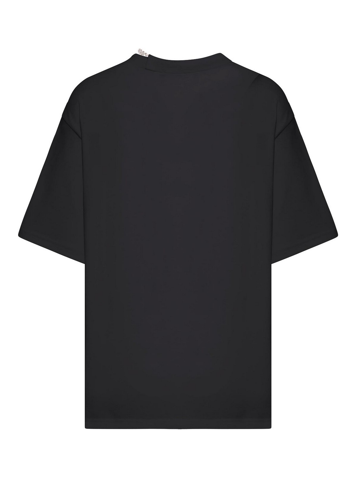 T-Shirt aus reinem Baumwolljersey, gerader Schnitt, runder Halsausschnitt mit origineller Konstruktion, gerippte Details an den Rändern, spezieller Ausschnitt, an dem Sie eine Halskette mit einem personalisierten Anhänger einsetzen können, Farbe: schwarz