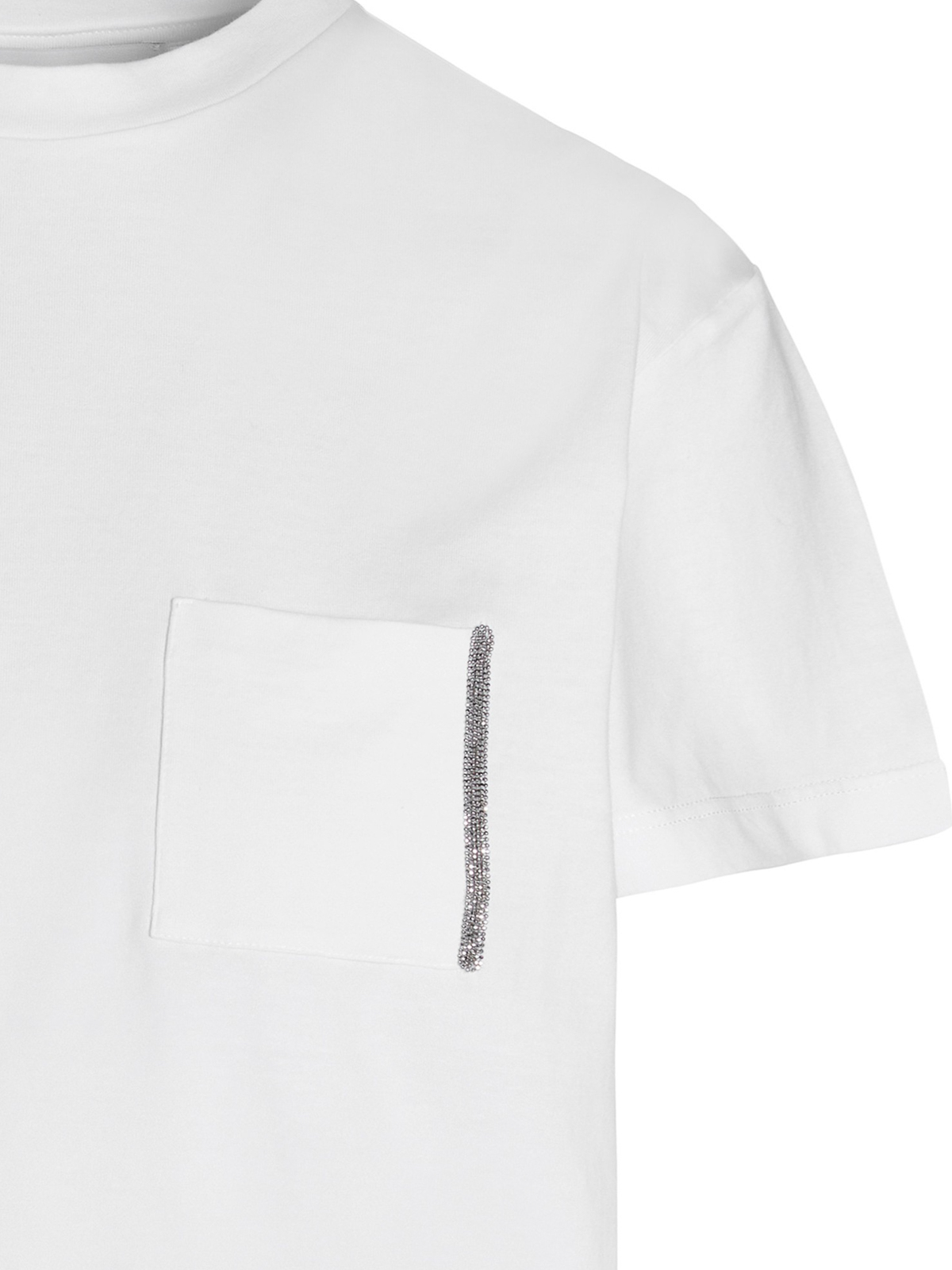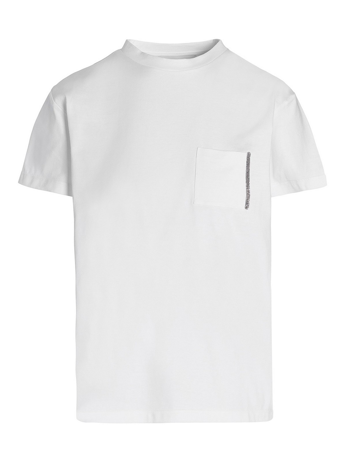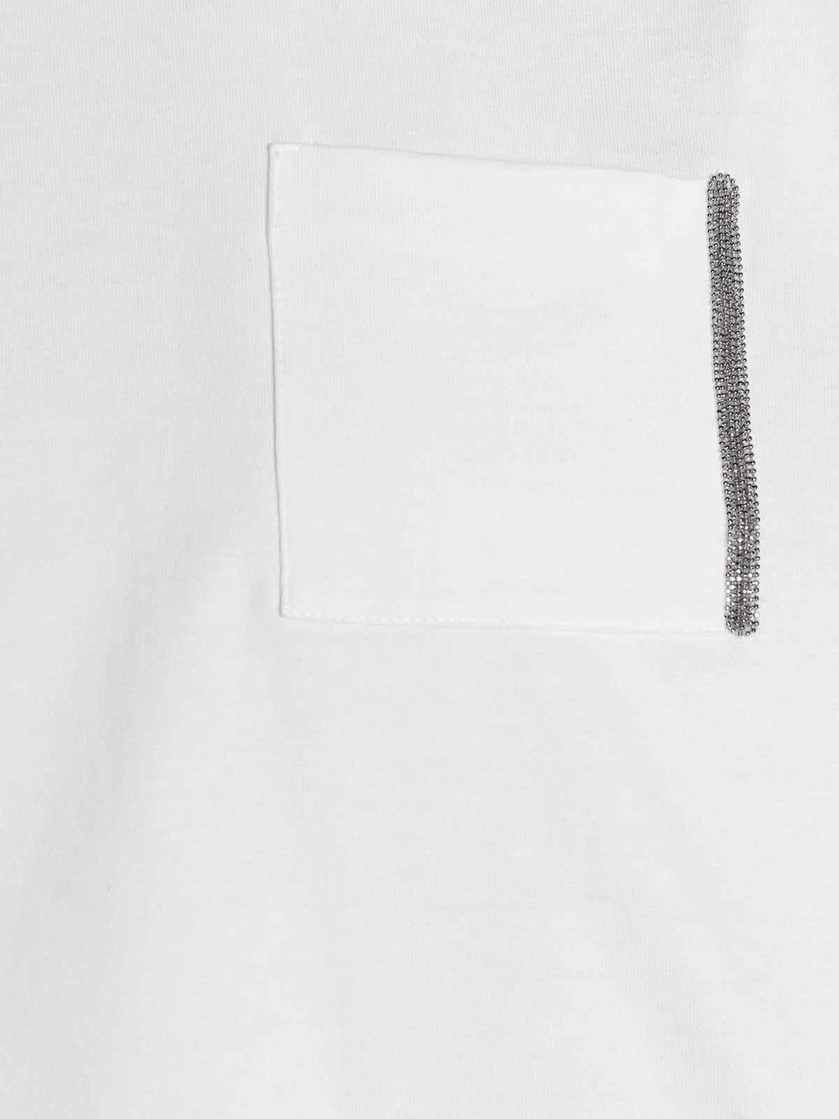 Baumwoll-T-Shirt mit Rundhalsausschnitt, Brusttasche und Schmuckdetail.