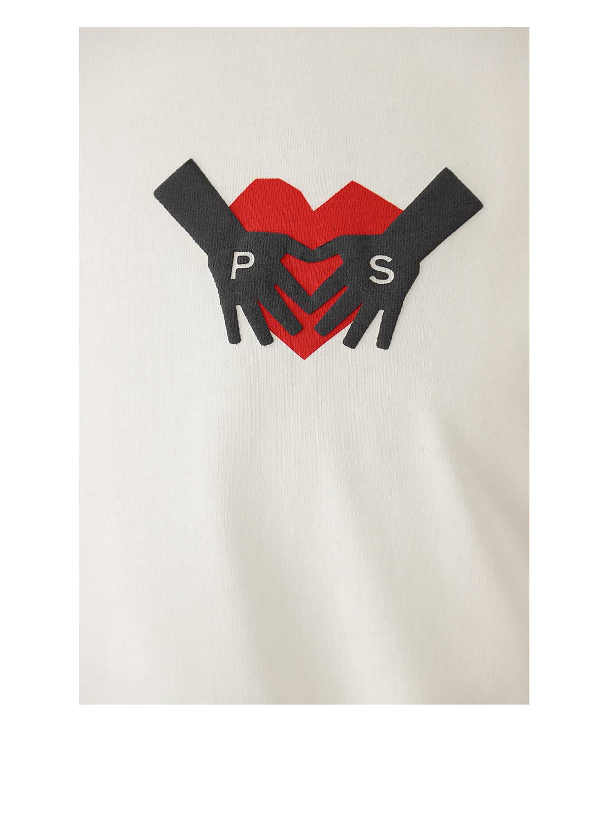 T-Shirt PS Heart in Weiß Kurzarm-T-Shirt mit Rundhalsausschnitt, gekennzeichnet durch den Frontprint in Rot und Schwarz mit den Initialen des Logos, Tragbarkeit über der Kinettik der Presshülsen, Farbe PS Art Multicolor, Farbe Weiß