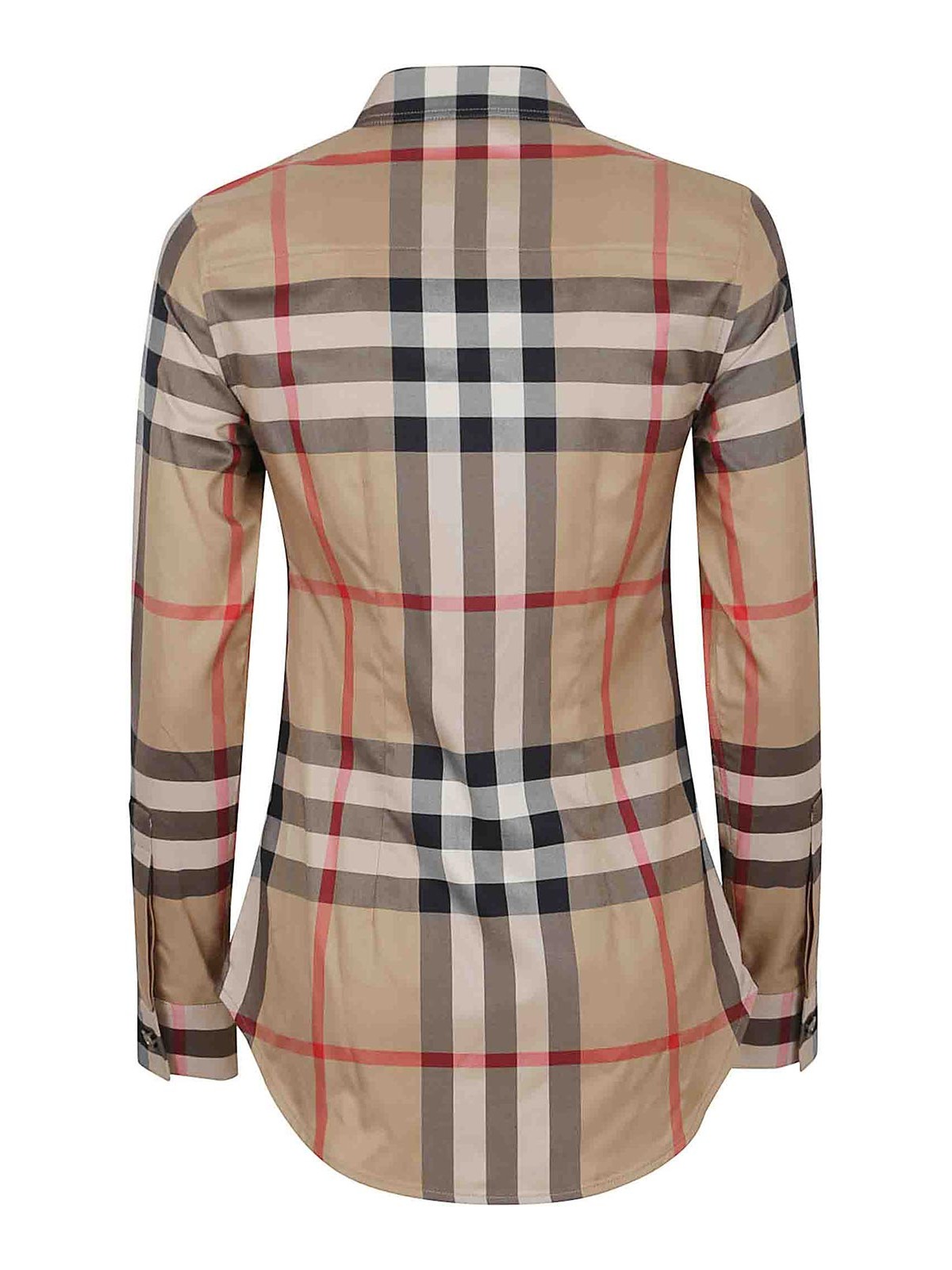 Baumwollhemd von Burberry, klassischer Kragen, Knopfverschluss vorne, Knopfmanschetten, abgerundeter Saum. Mit einer aufgesetzten Tasche.