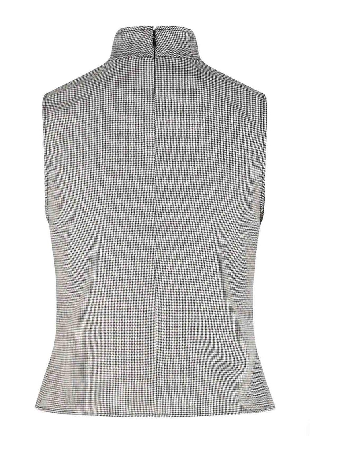 Halsband mit dekorativer Schnalle, dreifarbiges Muster, ärmellos, Logostickerei auf der Unterseite, Rückenverschluss mit unsichtbarem Reißverschluss und Haken