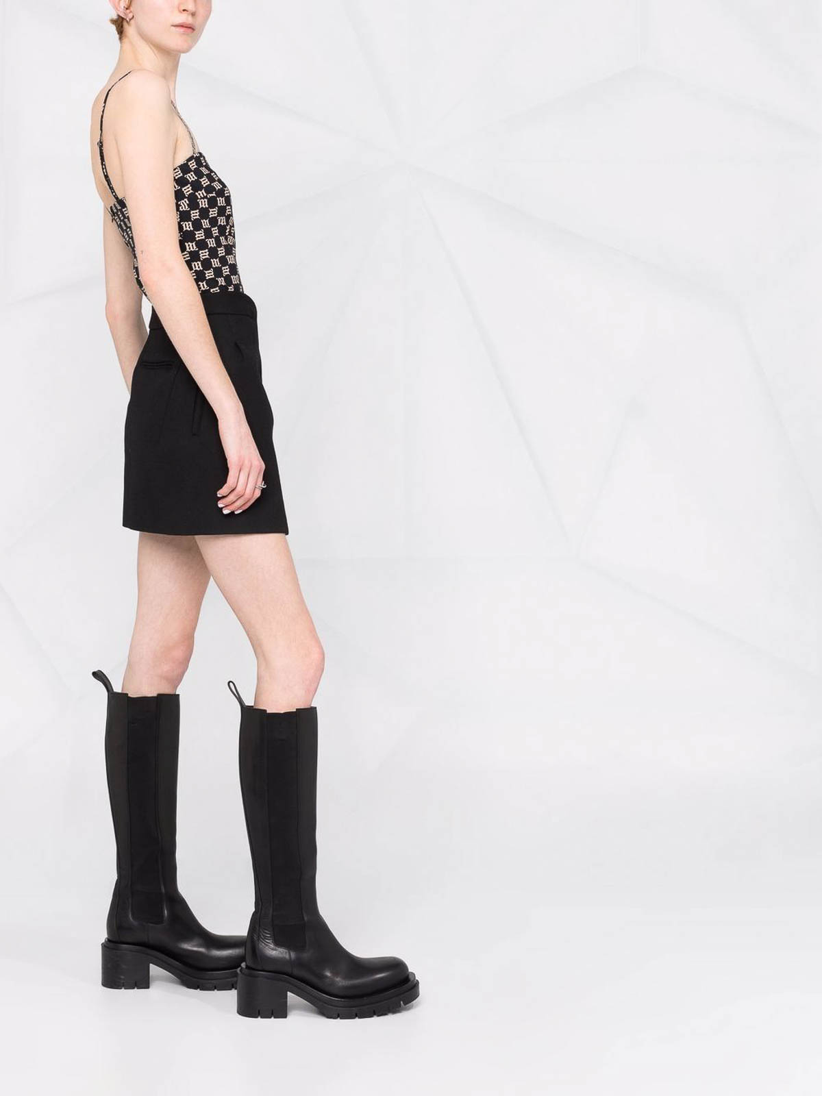 Schwarzes, tailliertes Crop-Top mit Riemen von misbhv