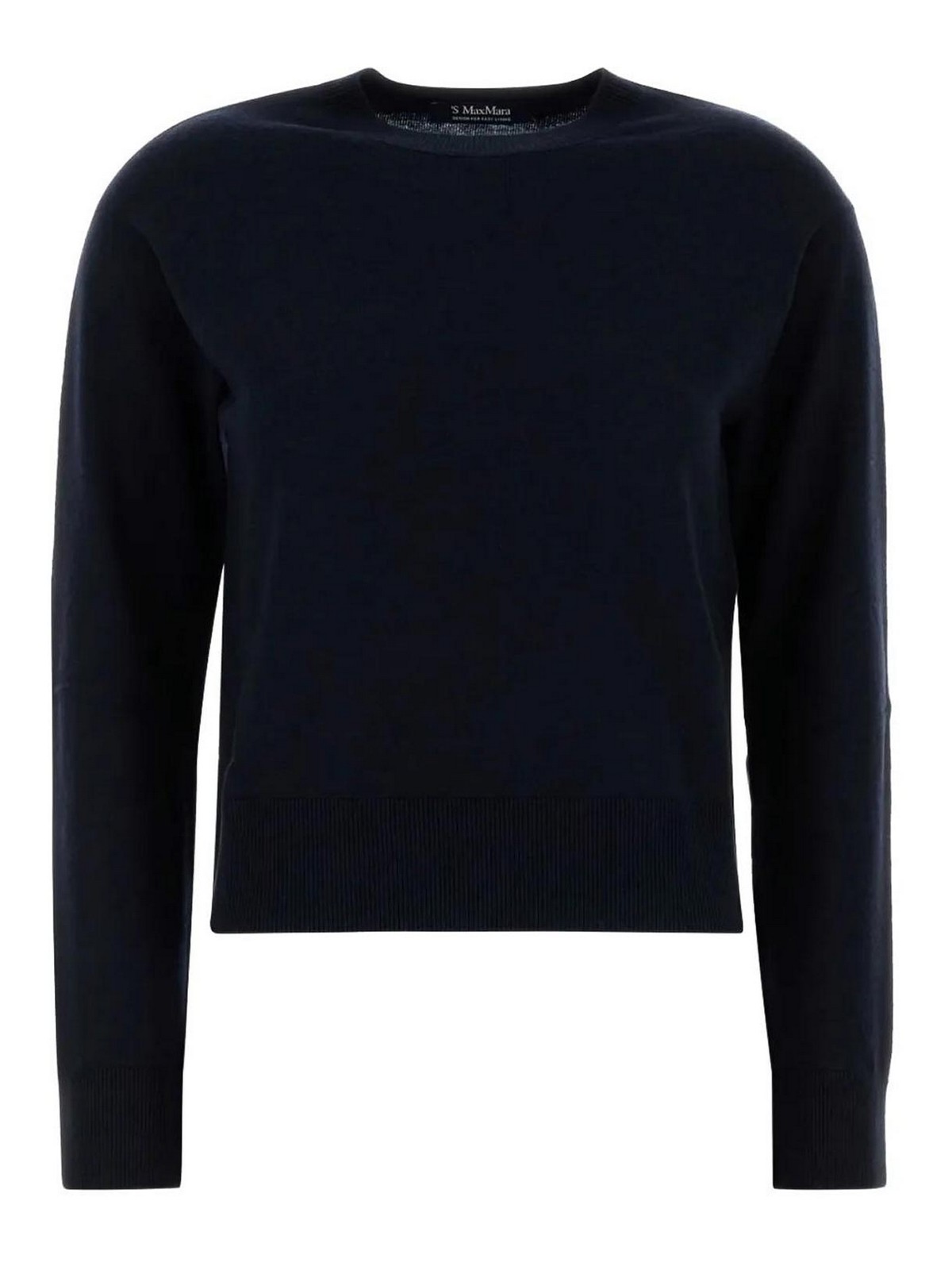 Marineblau, Wolle, Rundhalsausschnitt, lange Ärmel, Ellbogenaufnäher