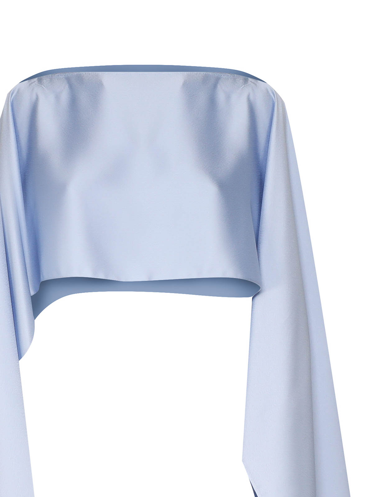 Crop-Top, Stola, asymmetrischer Seitenlänge, Bootsausschnitt, Farbe hellblau