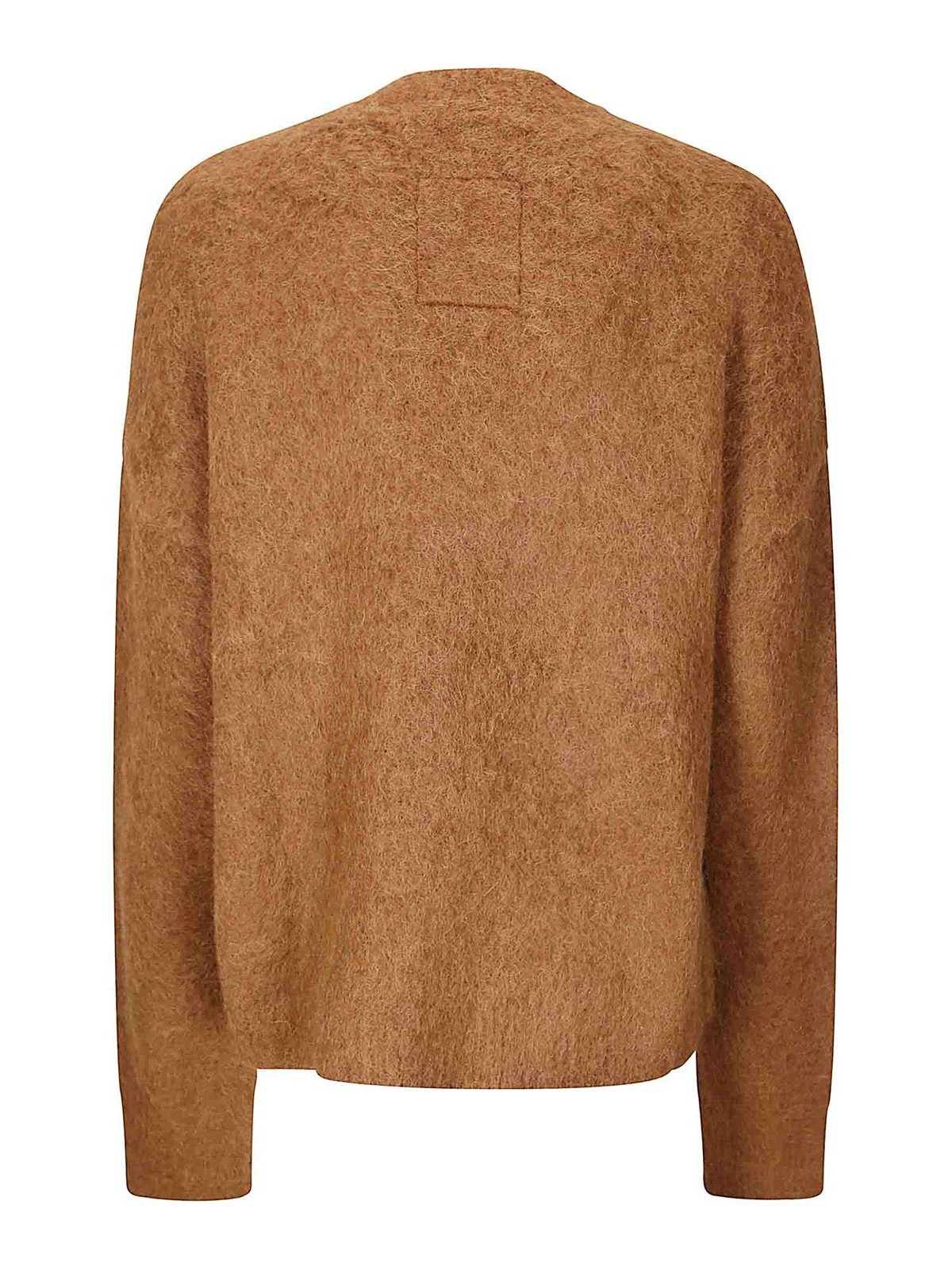 Weicher brauner Pullover aus Alpaka und Wolle, Rundhalsausschnitt, übergroße Passform.