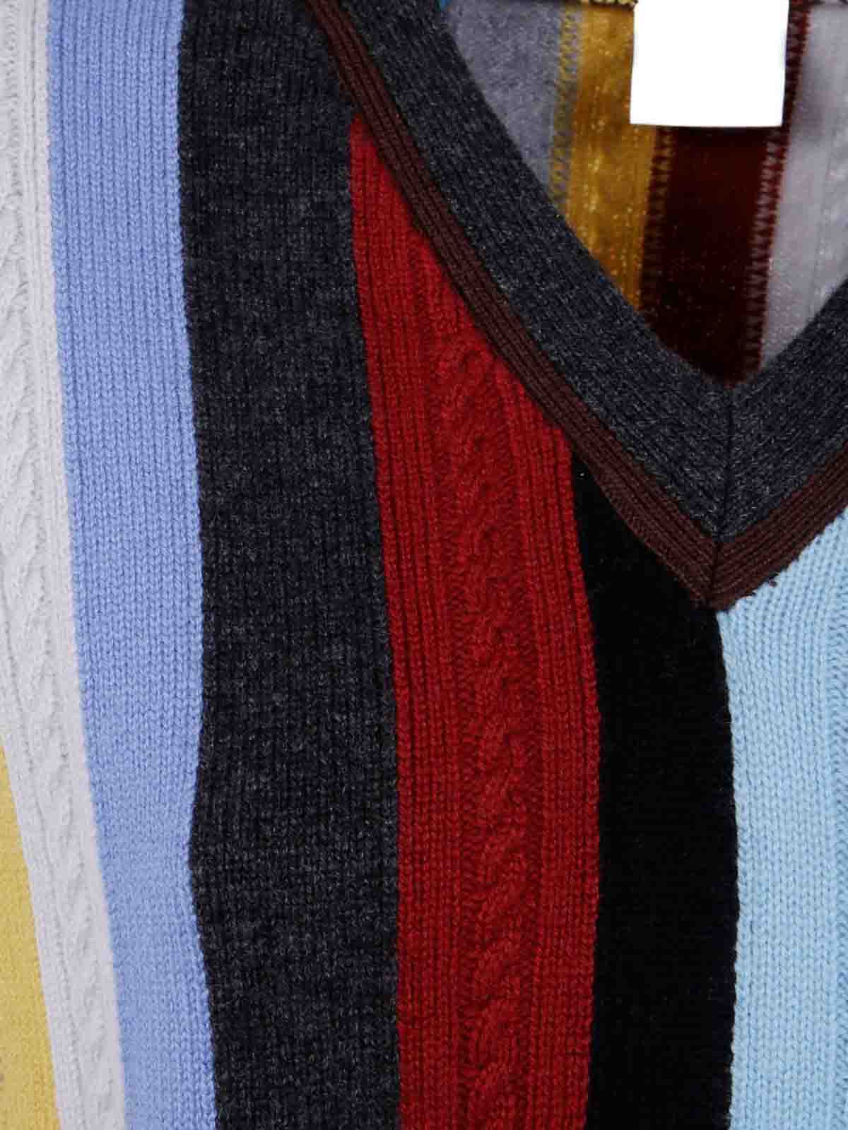 Bedrucktes Top mit mehrfarbigen vertikalen Streifen, Zopfmuster, V-Ausschnitt, ärmellos