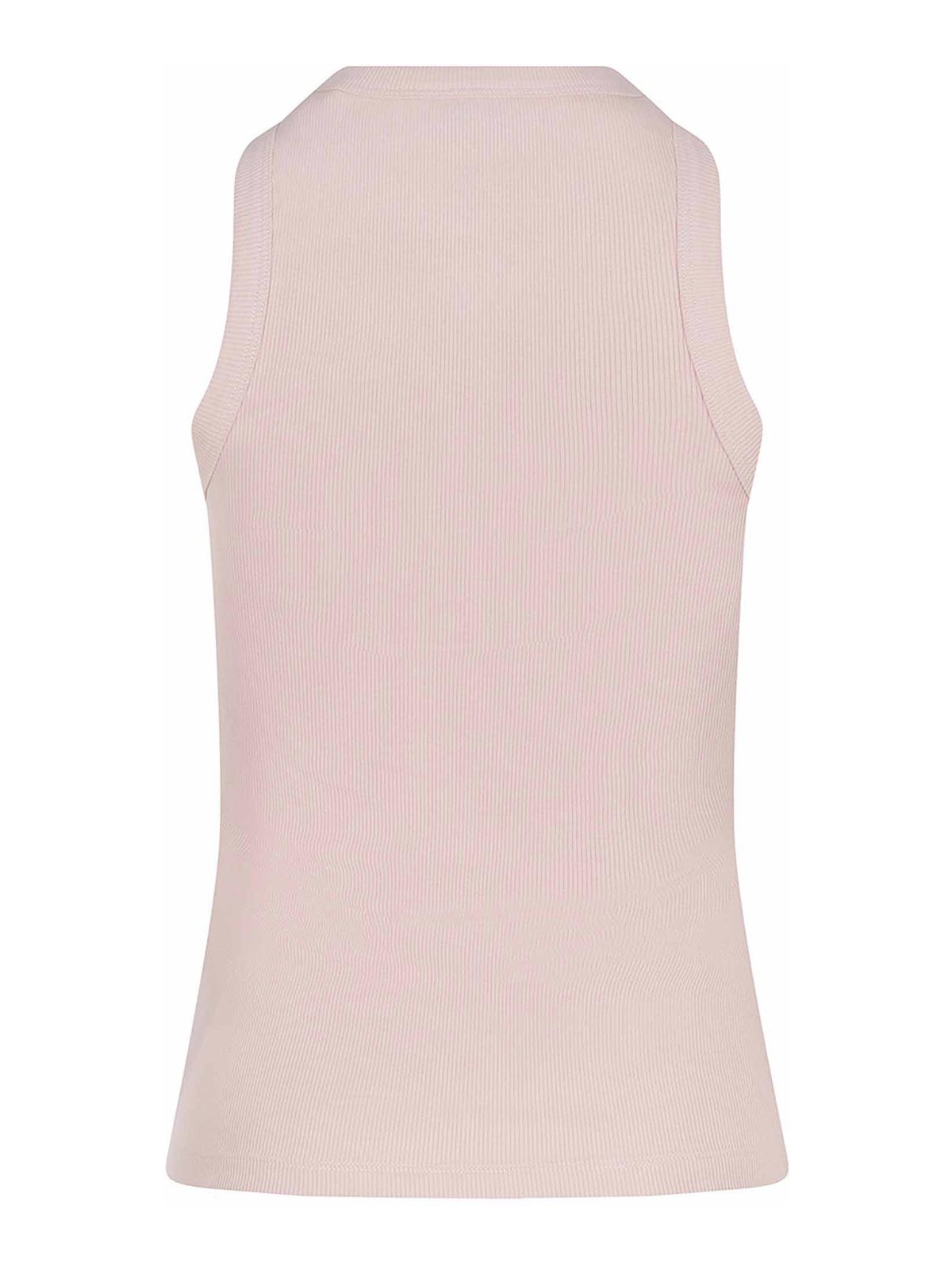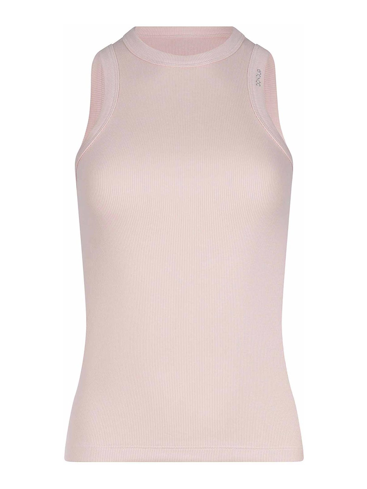 Dondup Tanktop aus rosafarbenem Baumwollgemisch, vollständig gerippt, gerippter Rundhalsausschnitt, ärmellos, kontrastierender gestickter Logo-Schriftzug auf der Vorderseite, 96% Baumwolle, 4% Elastan Hergestellt in Italien