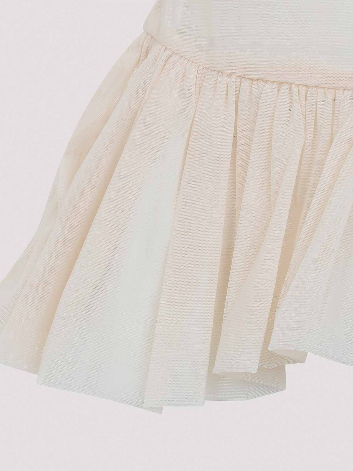 Simone Rocha Nude-Beiges, transparentes Ballettschößchen. Hergestellt aus einer Mischung aus Polyamid und Elastan. Rundhalsausschnitt, kurze Rüschenärmel, Schößchendesign, asymmetrischer Saum.