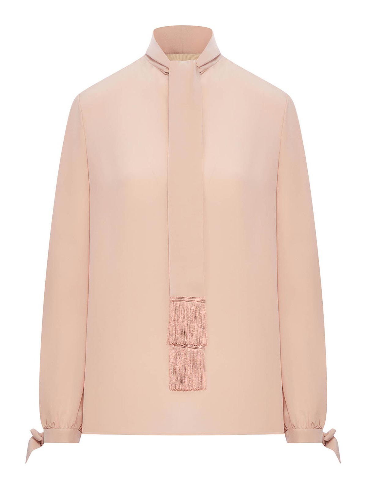 Schalkragen mit Tripolina am Hals- lange Ärmel- Manschette mit Schleifen-, rosa