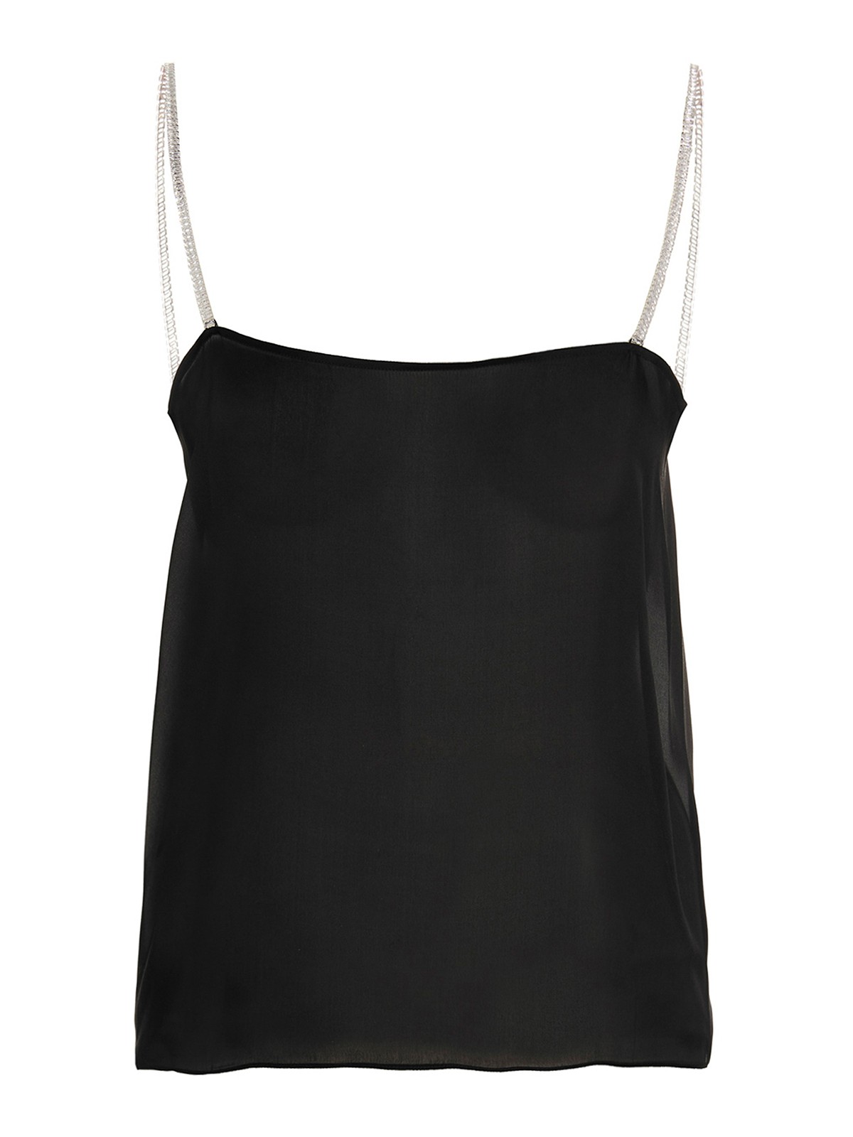 Transparentes Seidentop mit Pailletten-Schulterträgern