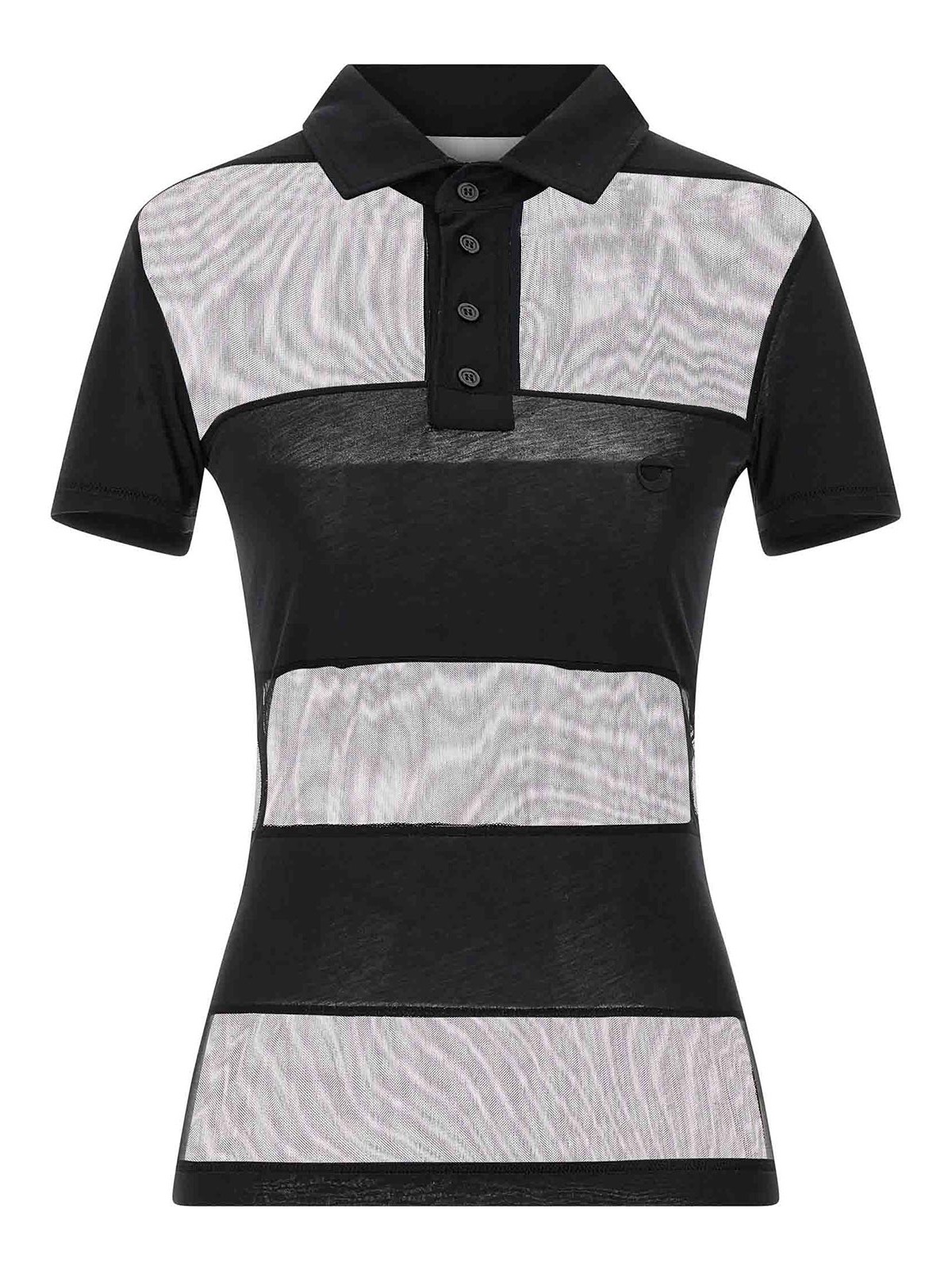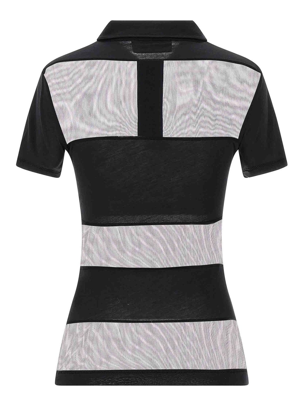 Halbtransparentes Top mit Polokragen und Panelstruktur, V-Ausschnitt, kurze Ärmel