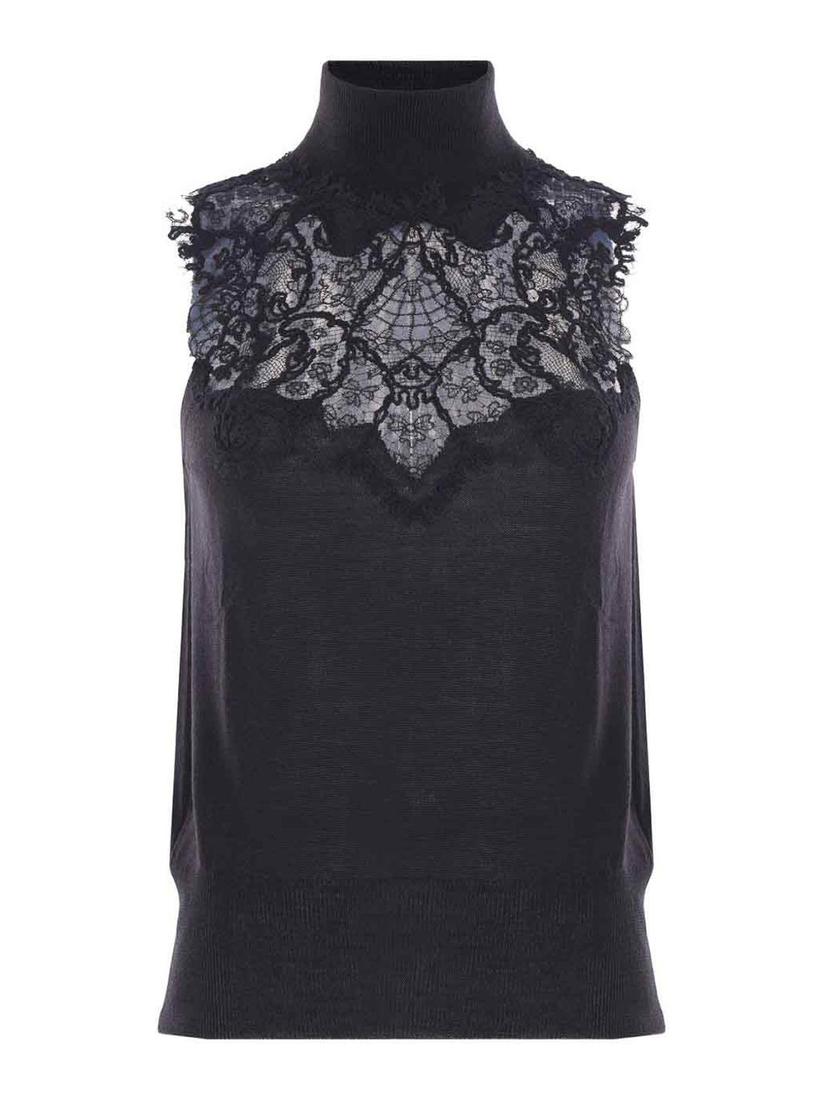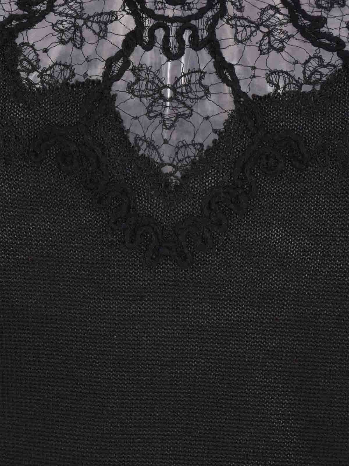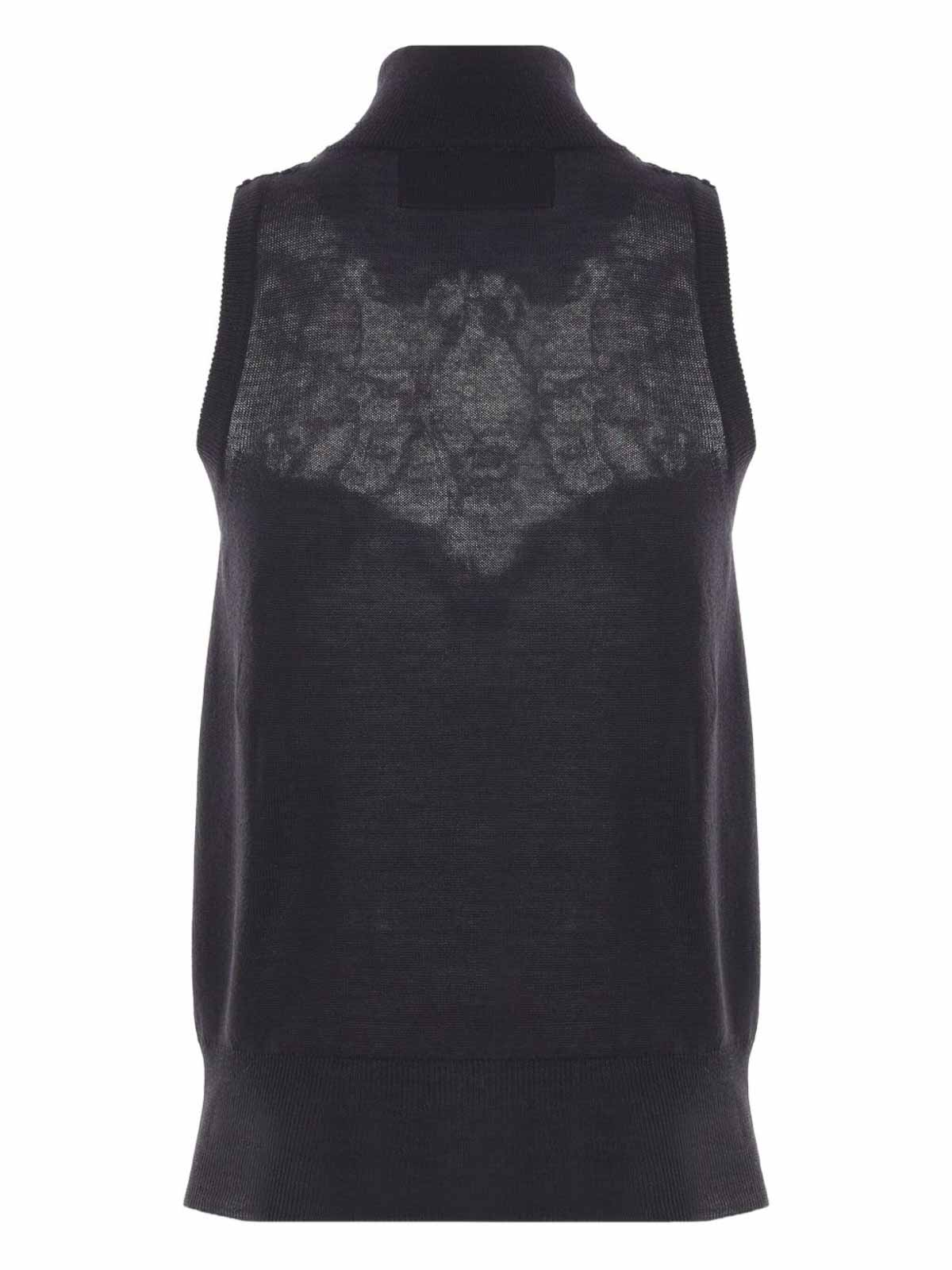 Schwarzer Rollkragenpullover mit Spitzeneinsatz, ärmelloser, gerippter Saum