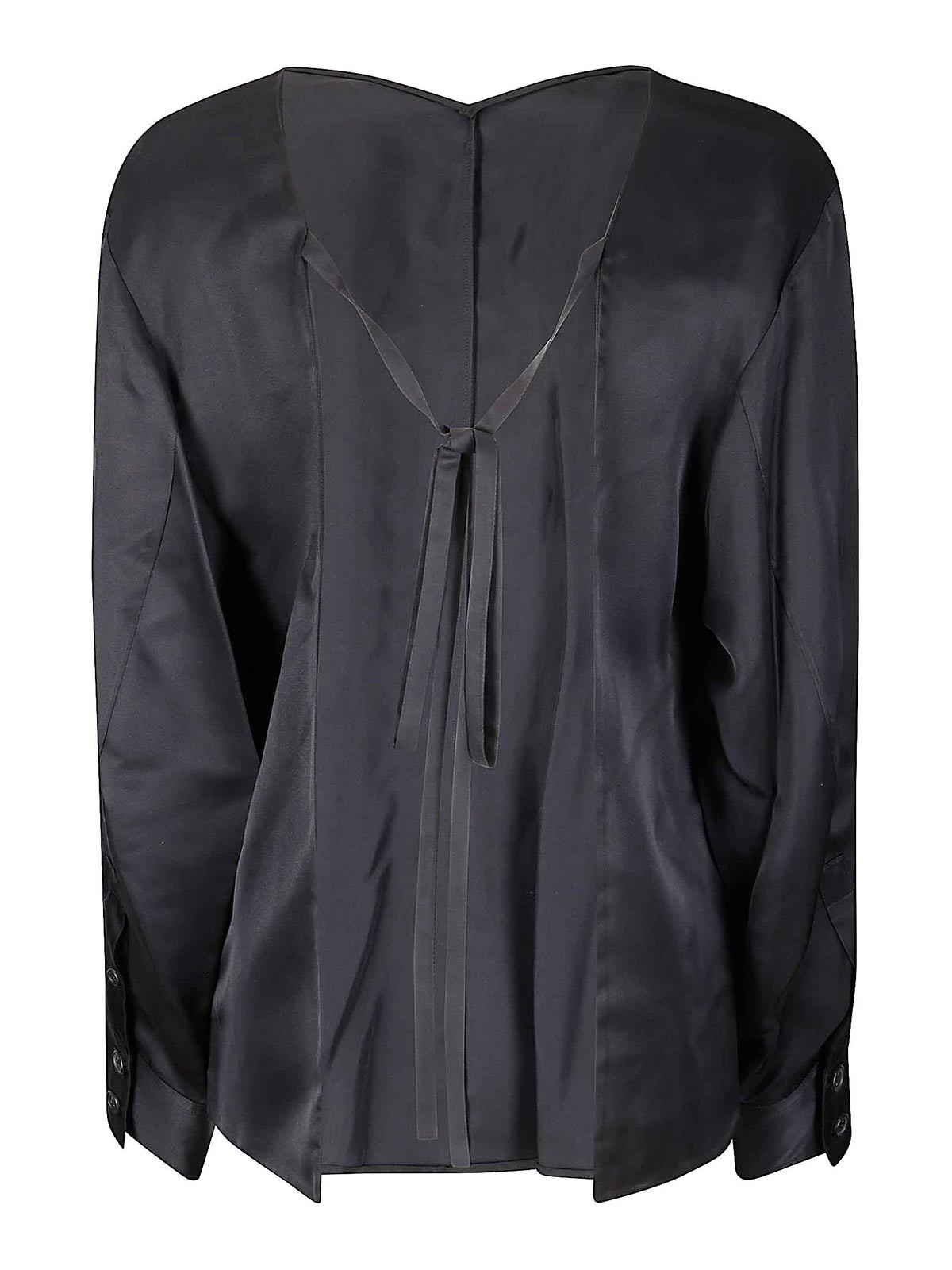 Satinoberteil mit offenem Rücken zum Binden auf der Rückseite, lange Ärmel, normale Passform.