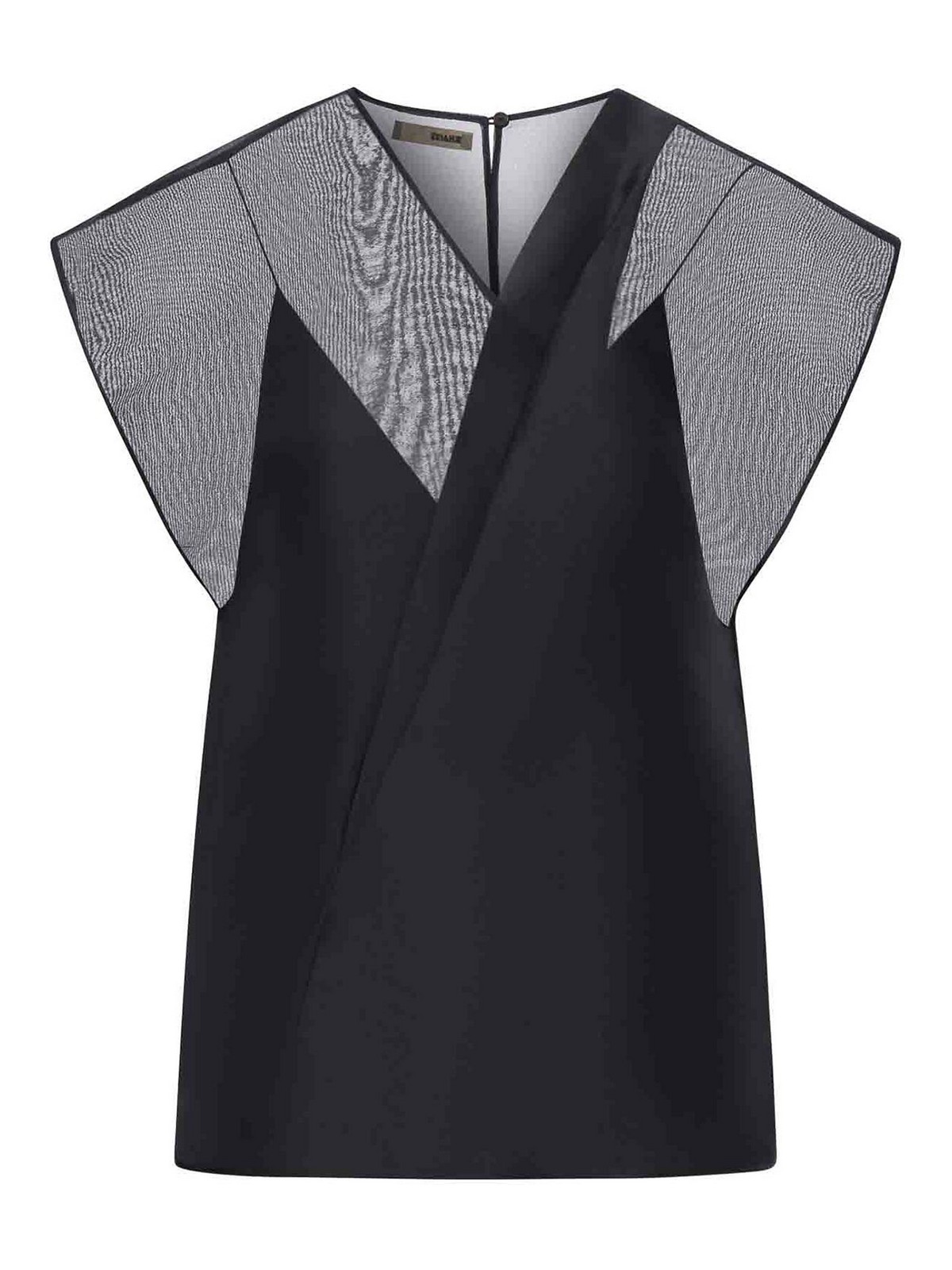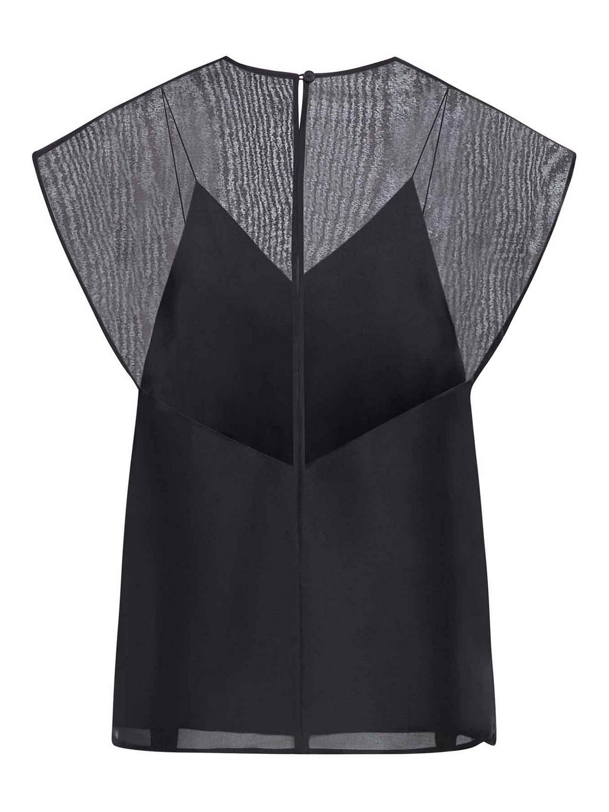 Flügelärmel, inneres Tanktop, Button-Up-Design, Schlüsselloch hinten, gerader Saum, 100% Seide, Farbe: Schwarz