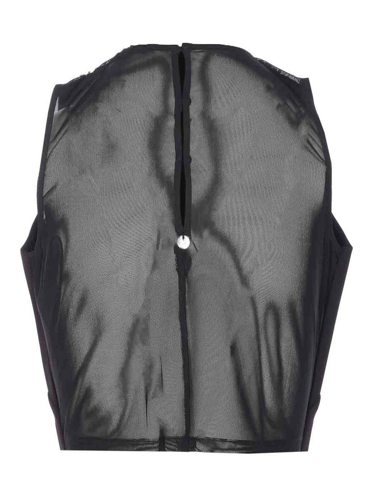 Liu Jo schwarzes Top, Knöpfe auf der Rückseite, durchsichtig auf der Rückseite, applizierte Kristall-Details, ärmellos