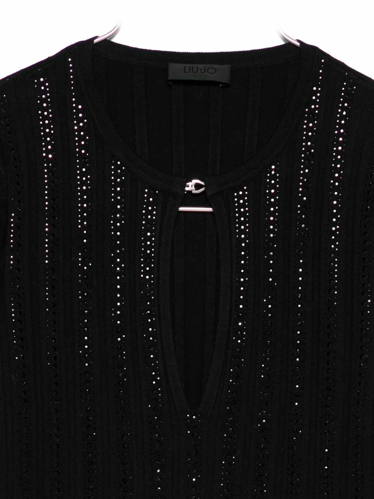 Mit schwarzer, synthetischer Diamantverzierung mit Schlüssellochöffnung, geripptem Strick, langen Ärmeln und Rundhalsausschnitt