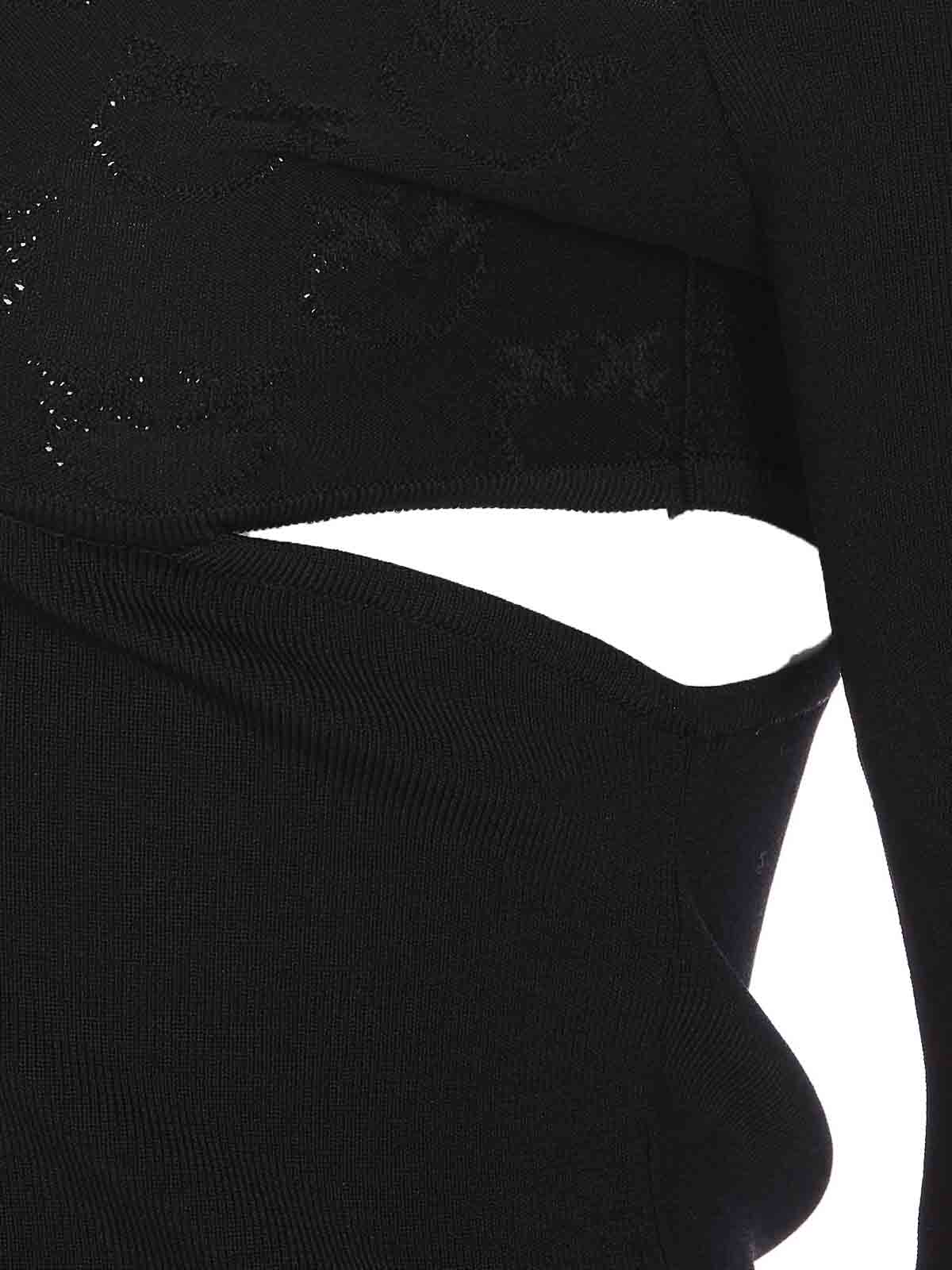 Pinko Mammut-Oberteil mit langen Ärmeln, V-Ausschnitt, seitlicher Ausschnitt, gesticktes Ton-in-Ton-Logo unten