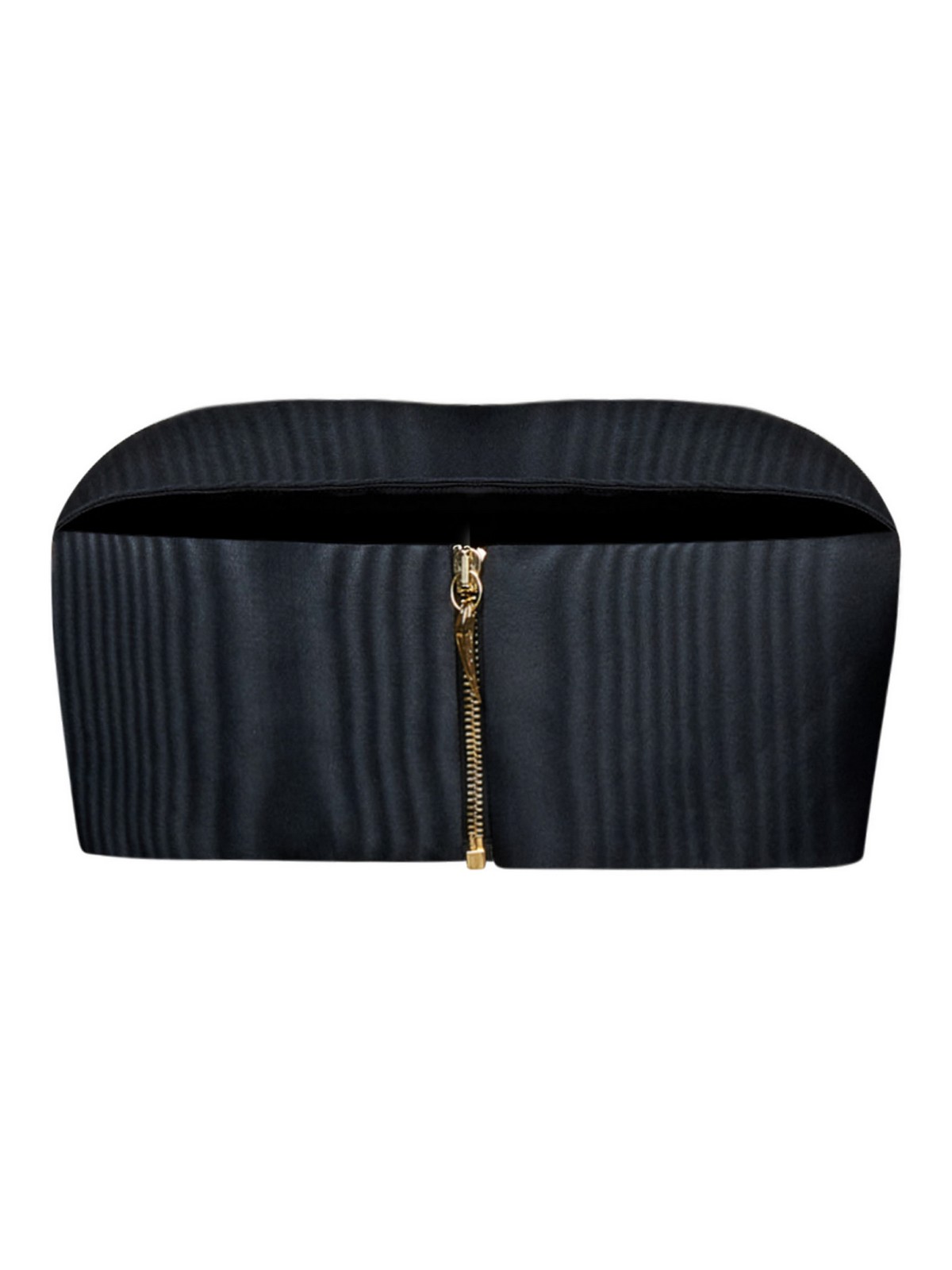 Goldfarbener Reißverschluss auf der Rückseite Hornreißverschlusszieher trägerloses Bandeau-Design marmorierter Stoff kurz geschnitten schwarze Farbe 100% Polyester der Artikel auf dem Foto entspricht einer It-Größe