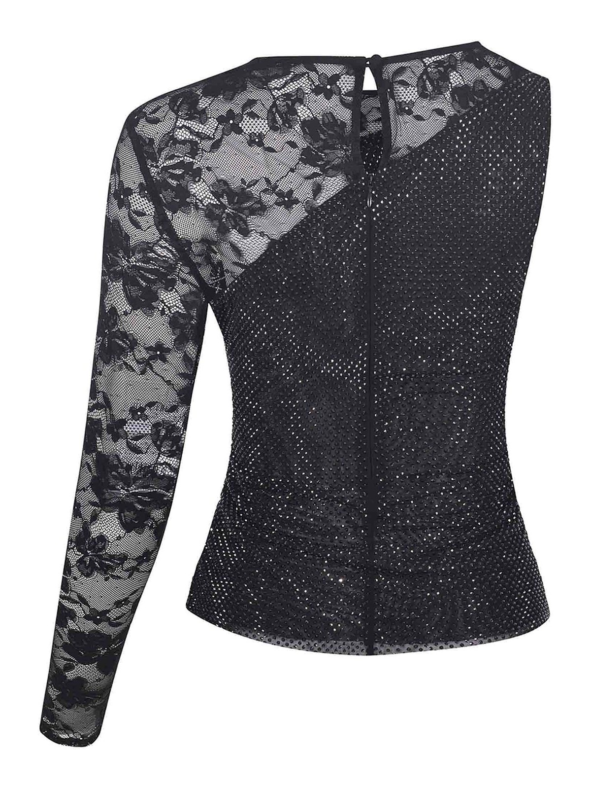 Top Selbstporträt aus schwarzem Mischpolyester. komplett mit Ton in Ton bezogenen Strasssteinen. Spitzeneinsätze. Rundhalsausschnitt. linker Langarm in Spitze. Seitlich drapiert. Verschluss hinten mit Knopf und Reißverschluss. Gefüttert. 95% Polyester 5% Elastan.