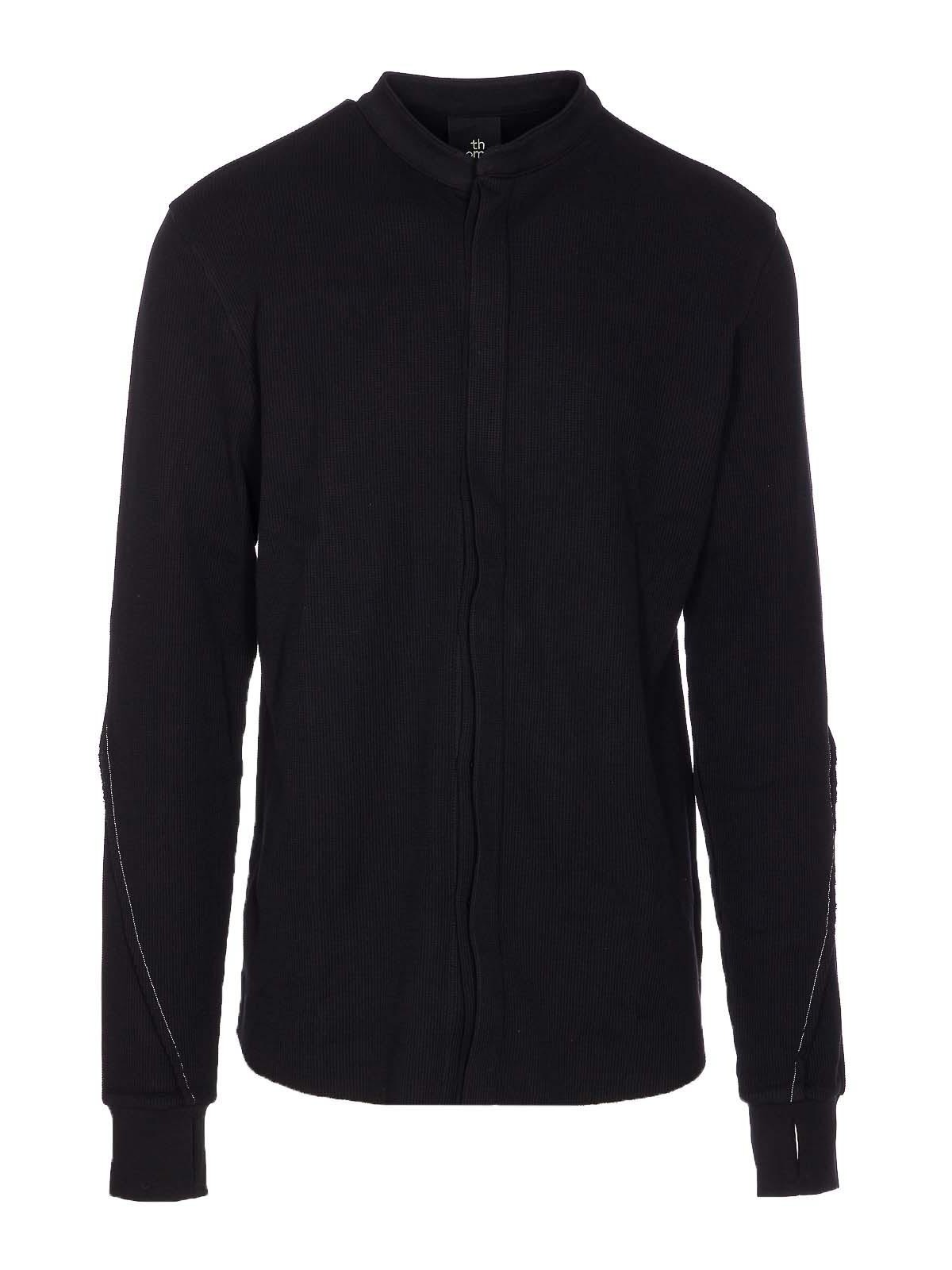 Thom Krom schwarzes Langarmshirt, Knopfverschluss auf der Vorderseite, Rundhalsausschnitt