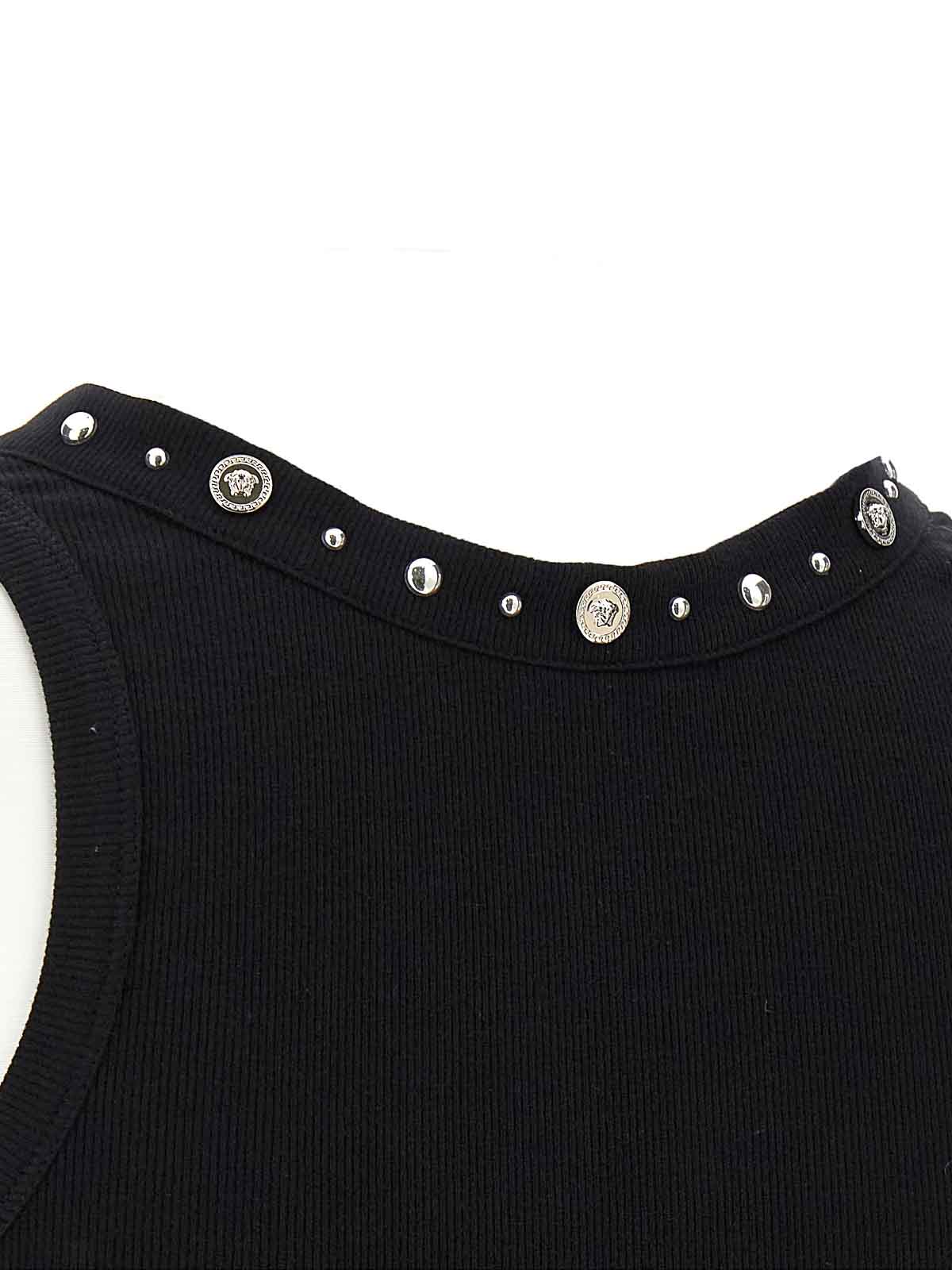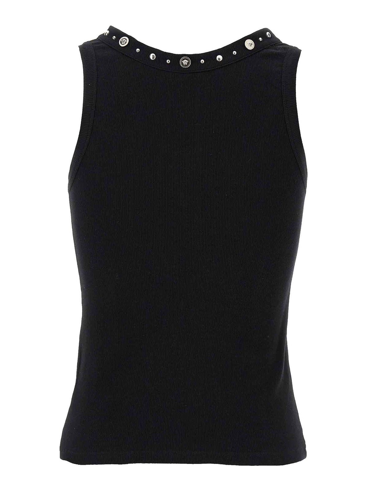 Tanktop aus gerippter Stretchbaumwolle mit Rundhalsausschnitt, Metallnieten und Medusen-Detail.