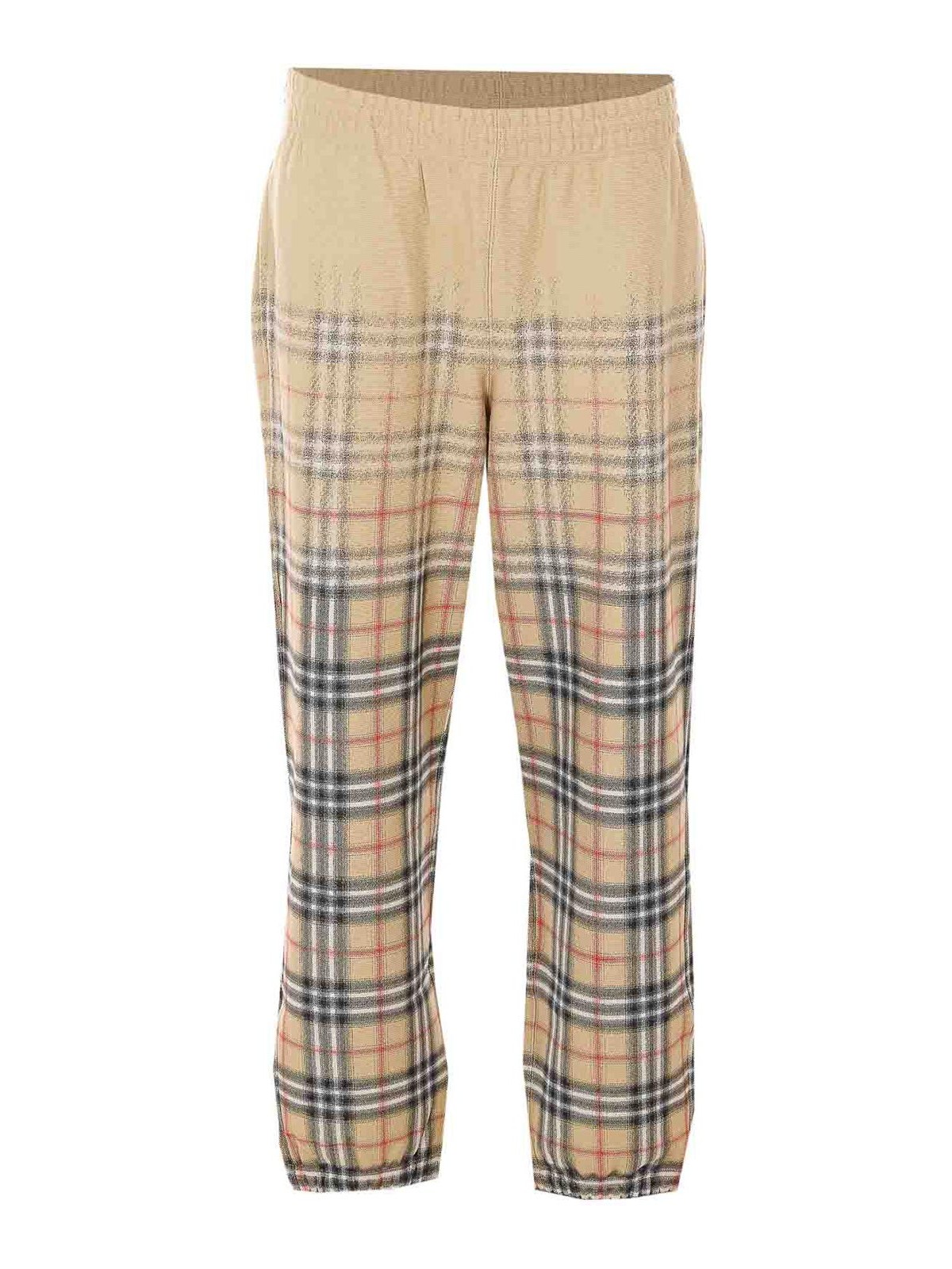 Beigefarbene Jogginghose mit kariertem Farbverlauf, elastischer Bund, Seitentaschen, Saumverschluss