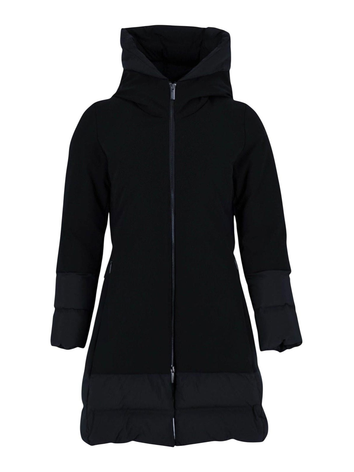 Rrd Surflex Winter Hybrid Long Damenjacke technisches Stratofabric# zeitlose Eleganz und zeitgemäßer Geist verschmelzen in dieser Oberbekleidung mit einem essentiellen und raffinierten Design die Surflex Winter Hybrid Long Damenjacke aus technischem Stratofabric# mit atmungsaktiver und wasserdichter Membran und Außenfläche aus supermattem, elastischem und nachhaltigem Surflex. Die mittellangen Kanäle an der Unterseite und den Ärmelabschlüssen unterstreichen die Silhouette und verstärken den Kokoneffekt der Entendaunenpolsterung/was auch an kalten Tagen für Wärme und Komfort sorgt, die Kapuze gepolstert umrahmt das Gesicht elegant und bietet Schutz und Stil. Der doppelte Schieberegler Frontreißverschluss und die unsichtbaren Seitentaschen runden ein essentielles und raffiniertes Design ab, ideal, um Eleganz und Funktionalität zu interpretieren. Wasserdichtes und atmungsaktives Stratofabric# aus superundurchsichtigem und elastischem Surflex in Entendaunen/ gepolsterte und umhüllende Kapuze, Röhrenkanäle an der Unterseite und an den Manschetten vorne mit doppeltem Schieberreißverschluss, Seitentaschen mit unsichtbaren Reißverschlüssen, elegantes und modernes Design
