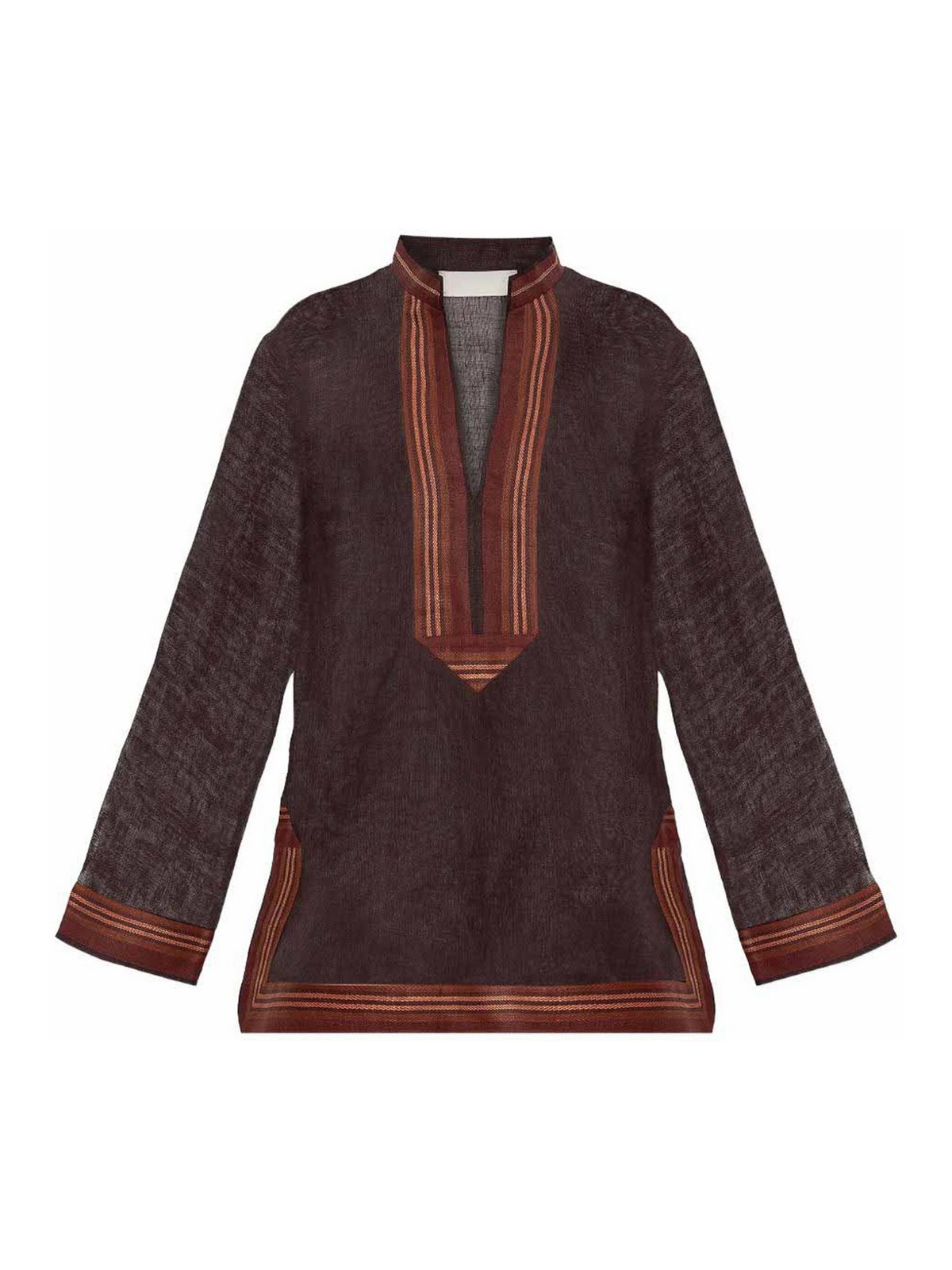 Braune, gestreifte Details, V-Ausschnitt, lange Ärmel