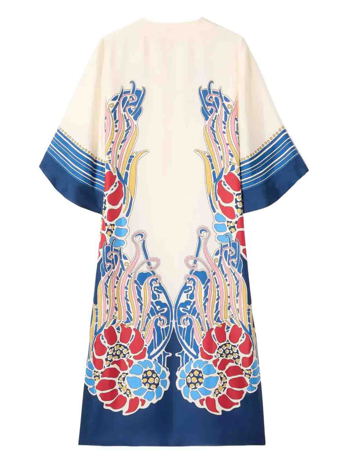 Seidenkaftan mit platziertem Aufdruck, weiten Ärmeln und lockerer Passform für eleganten Tragekomfort.