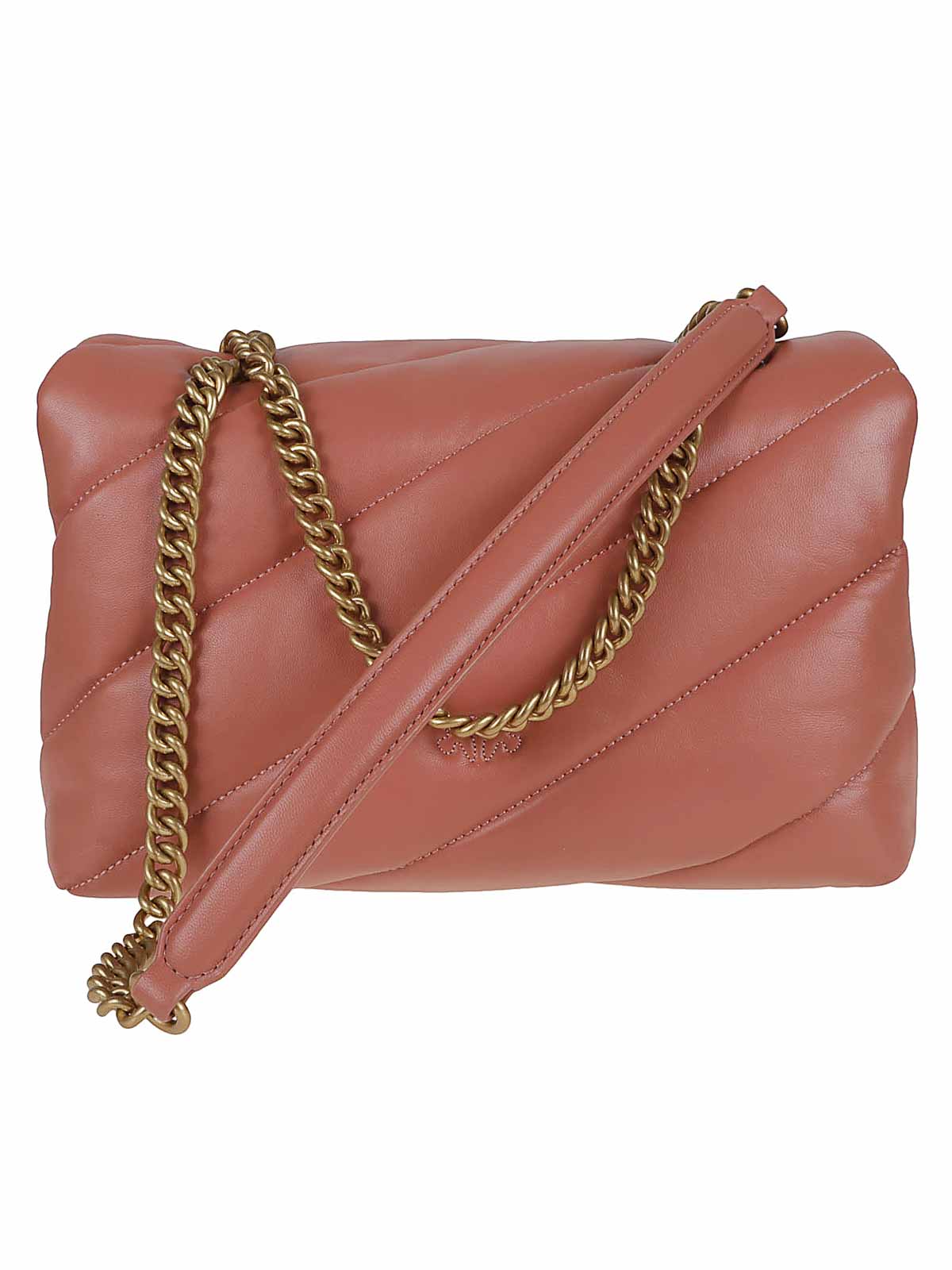 Love Puff Schultertasche von Pinko. Hergestellt aus Kalbsleder mit gesteppter Textur. Eine Logo-Schnalle, ein Schulterriemen mit Kette, eine Innentasche mit Reißverschluss und eine interne Einschubtasche sind ein Muss für die Marke, die in allen Kollektionen mit den neuen Farben vertreten ist!
