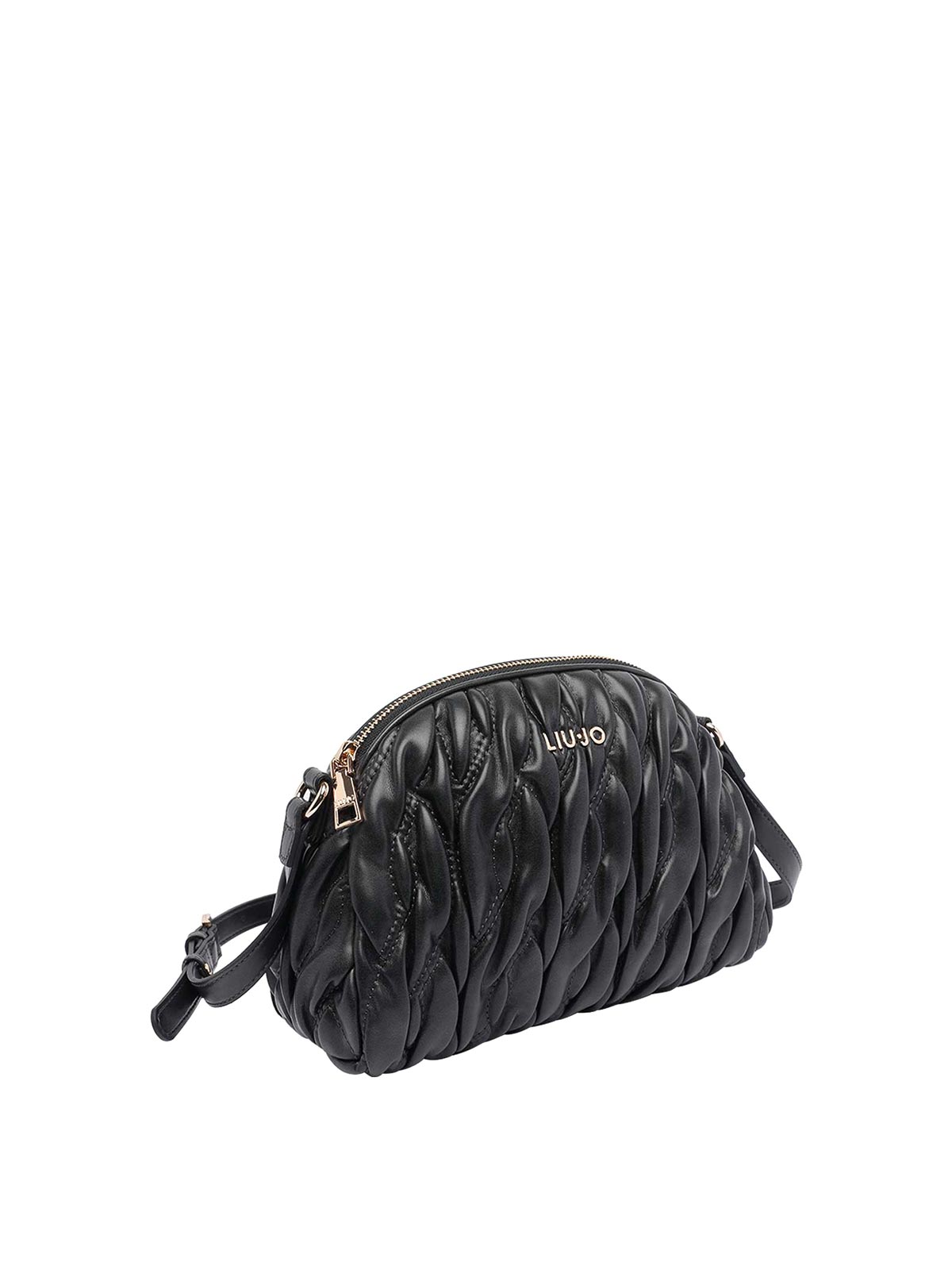 Liu Jo Schultertasche, mittelgroßes Logo, mit Reißverschluss, verstellbarer Riemen, Vorderseite, Logo, Matelasse-Modell, Designer-Farbbezeichnung: Schwarz