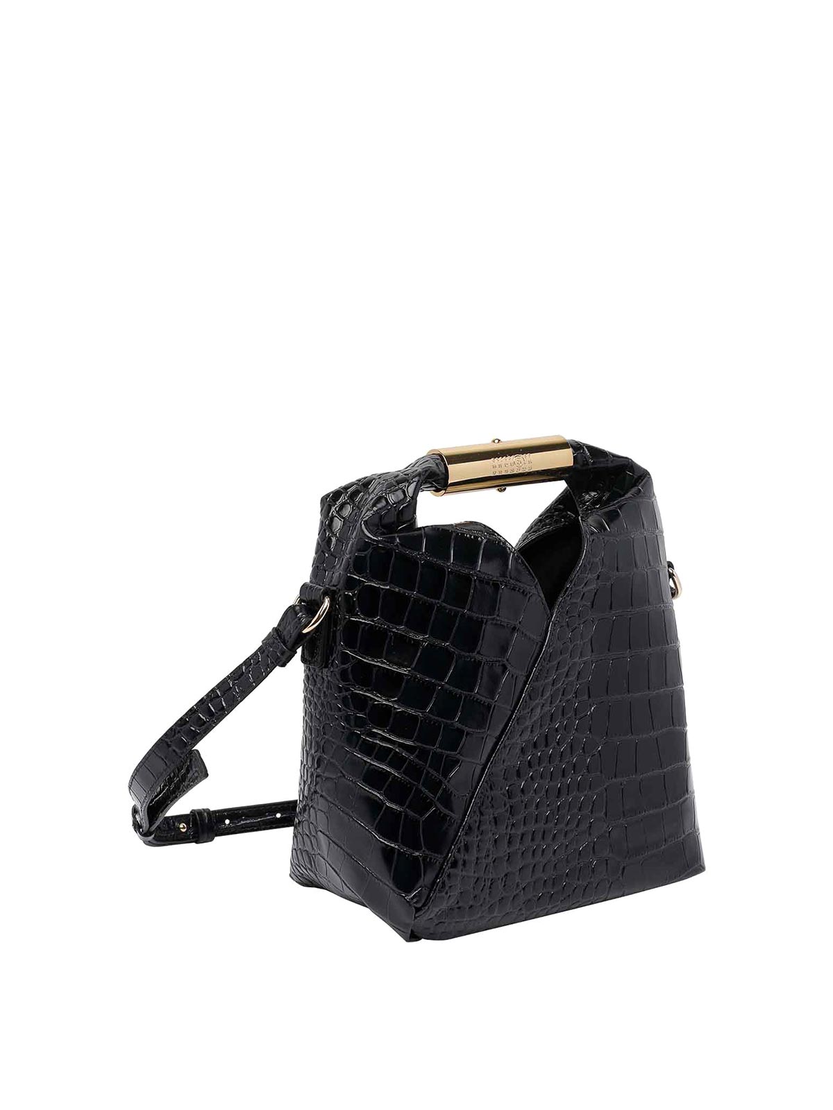 Mm6 Maison Margiela schwarze kleine japanische Umhängetasche, Clipverschluss, 2 Henkel, anpassbarer Riemen, Krokoprint