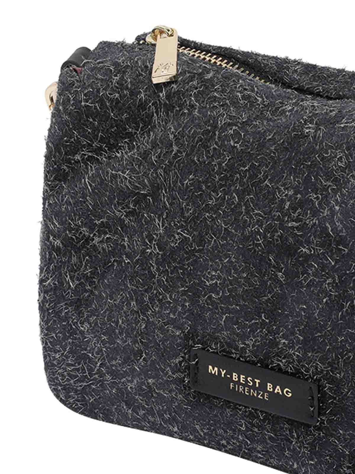 My Best Bag Firenze Schultergurt mit schwarzem Logo, Reißverschluss, 3 Abschnitte, Schulterriemen mit Kette, Logo auf der Vorderseite