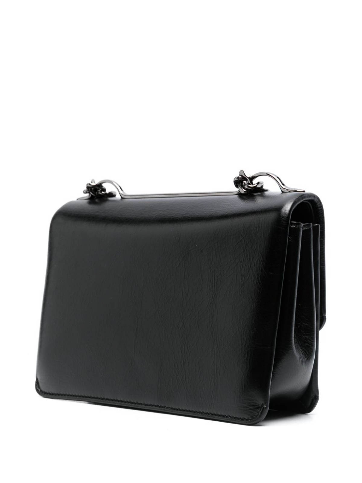 Glattes, genarbtes Oberteil mit Drehverschluss, Logo-Signatur, Schiebekette, Gliedergurt, Klappentasche, Hauptfach, Reißverschluss, Tasche mit eingeprägtem Logo