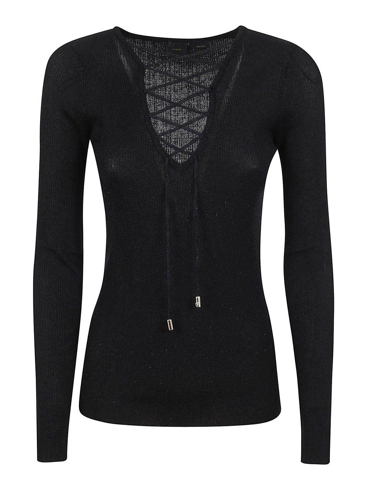 Pinko: Strickpullover mit V-Ausschnitt - V-Pullover - Schwarz