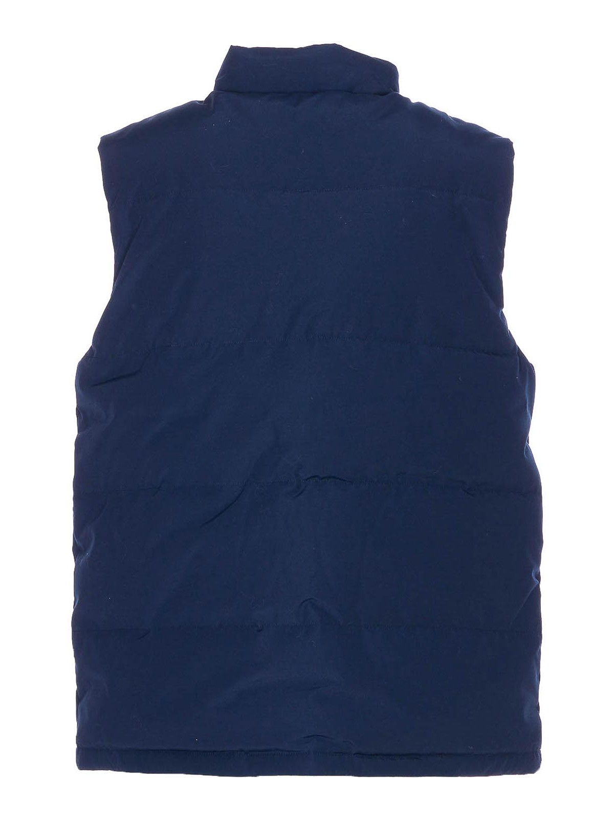 Canada Goose blaue, gepolsterte Freestyle-Weste mit durchgehendem Reißverschluss und Knöpfen, ärmelloses Patch-Logo auf den Taschen, Logo