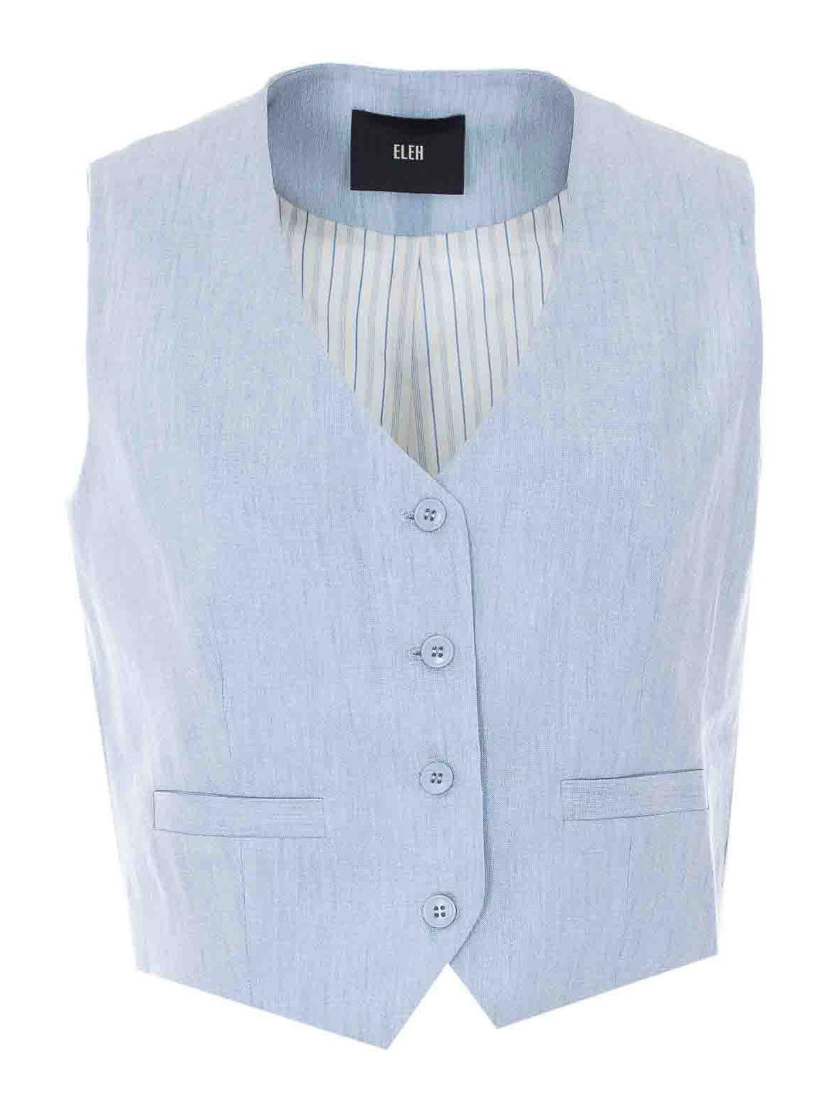 Hellblaue Weste Eleh, V-Ausschnitt, Knopfverschluss, ärmellos, Fronttaschen