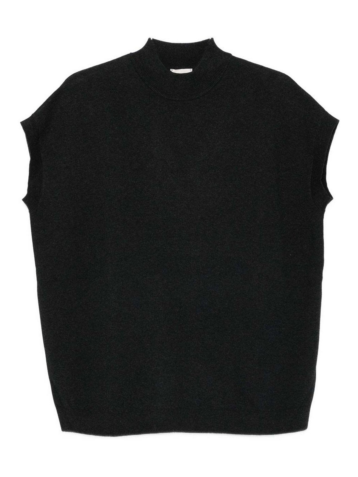 Schwarz, Stehkragen, Flügelärmel, gerader Saum