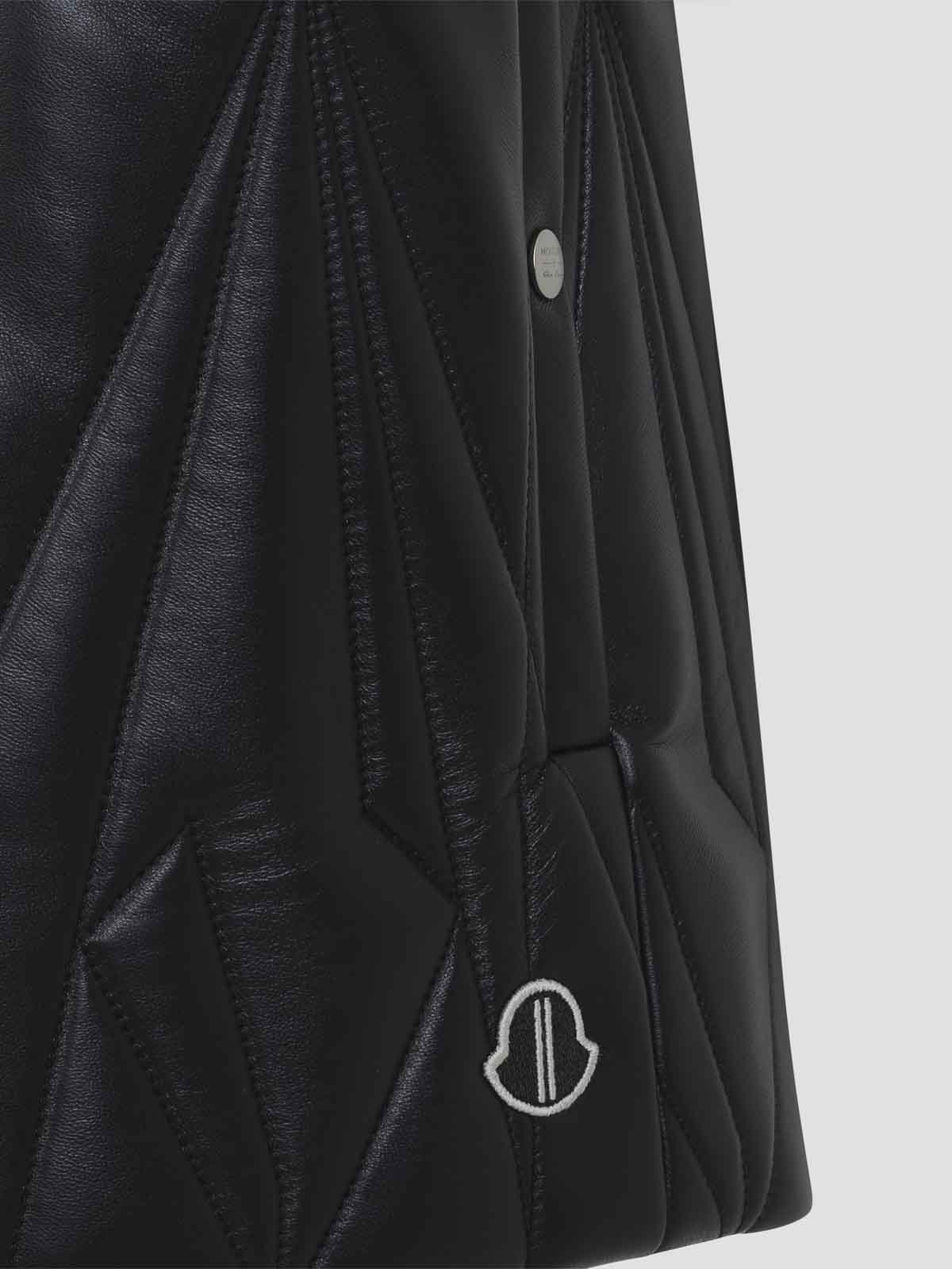 Moncler x Rick Owens schwarze Geocamo-Flugweste. schwarzes recyceltes ultraleichtes Polyester ist über der Hüftlänge mit langen Ärmeln und einer schmalen Passform. mittiger Metallreißverschluss mit Knopfleiste und oberem Druckknopf, Seitentasche mit Druckknopfleiste und ein Rippstrick-Kragen und Manschetten aus Wollmischung. charakteristische Level-Schulternähte und ein Baumwoll-Gurtband mit Nietendetail auf der hinteren Passe. es ist eine Bettjacke, die das Geocamo gestepptes Design auf der Vorder- und Rückseite. Gestickter Logo-Patch von Moncler + Rick Owens auf dem oberen linken Arm. Innenfutter aus recyceltem, ultraleichtem Material Polyester und hat Innentaschen mit Metallreißverschlüssen. Leichte Daunenfüllung.